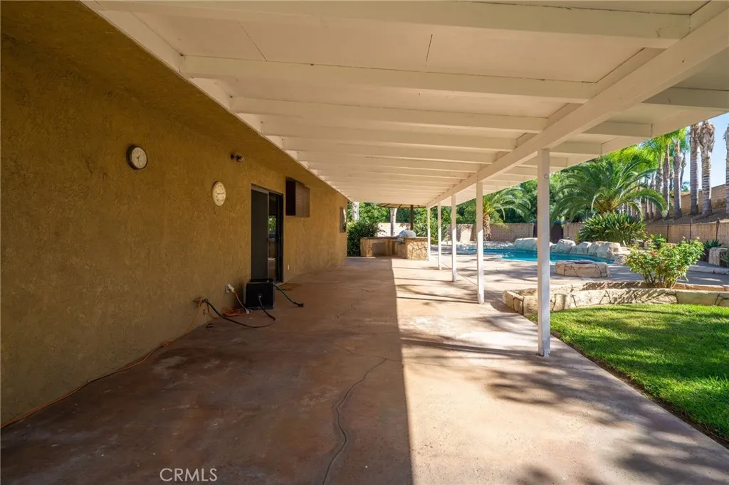 Welcome to 2330 Peppertree Lane, nestled at the end of a cul-de-sac in one of Riversides most desirable neighborhoods. Situated on an expansive 18,295 sq. ft. lot, this beautifully upgraded residence offers 2,177 sq. ft. of refined living space, enhanced by thoughtful renovations and an entertainers dream backyard. The front exterior has been recently painted, creating a crisp, modern curb appeal that complements the homes elegant design. There is plenty of parking space, including a side driveway that could be ideal for RV parking. The outdoor space has been transformed into a private resort-style retreat. A custom Pebble Tec poolincluding a remote-controlled systemserves as the centerpiece, surrounded by custom rock walls, stained and sealed concrete decking, and lush, low-maintenance landscaping. Towering palm trees, planted with a drip irrigation system and mulch for weed control, add a tropical ambiance. A built-in rock BBQ island, featuring a premium Lion grill and ice chest beneath a Palapa, creates the perfect space for outdoor dining and entertaining. Theres also a firepit for enjoying summer nights under the stars. Inside, the home has been enhanced with an array of high-end upgrades designed for both comfort and convenience. The kitchen is equipped with quality appliances, and the garage floor has been professionally finished with epoxy and sealant. Bathrooms have been completely remodeled, including a fully redesigned primary suite featuring a rainfall shower, updated flooring, and a walk-in closet. Additional features include laminate flooring, updated stonewor