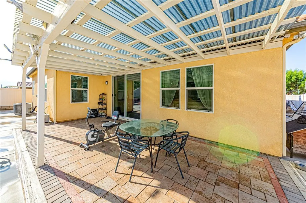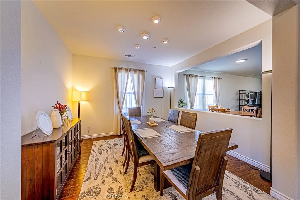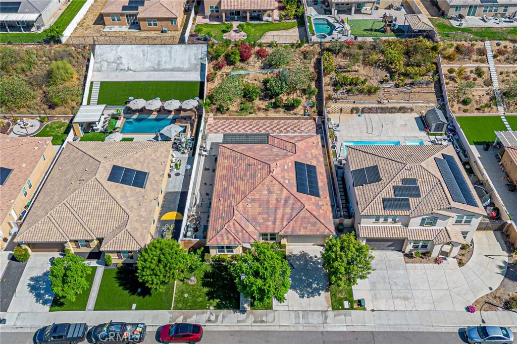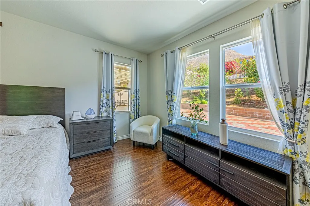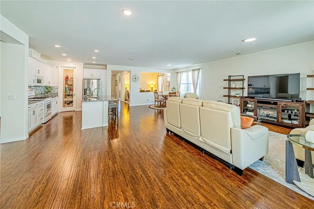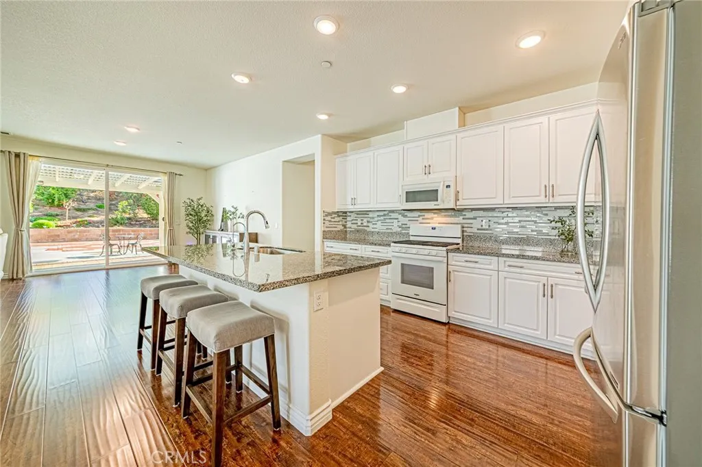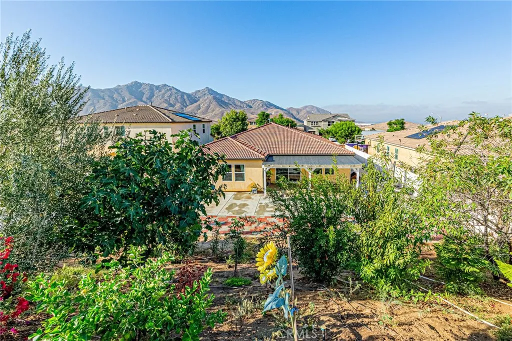 Nestled against the scenic foothills of Riversides Spring Mountain Ranch, this beautifully upgraded single-story home offers modern elegance, open living, and breathtaking mountain views. Built in 2018, the home features 4 spacious bedrooms, 3 full bathrooms, and a bright, open floor plan designed for todays lifestyle. The modern kitchen is a true showpiece, with white shaker cabinetry, granite countertops, designer glass-tile backsplash, stainless steel appliances, and a large center island perfect for gathering. The walk-in pantry with glass door adds both function and style. The open-concept layout flows seamlessly to the spacious great room and dining area, creating an inviting space filled with natural light and warmth. The primary suite offers a peaceful retreat with a large walk-in closet and a spa-inspired bath featuring dual sinks, quartz countertops, a soaking tub, and a separate shower. Three additional bedrooms and two full baths provide comfort and flexibility for guests or home office use. Step outside to enjoy your own private garden oasisa beautifully landscaped yard with mature fruit trees (including fig, pomegranate, pear, and more), colorful blooms, and sweeping mountain views. The spacious paved patio and covered sitting area offer the perfect setting for outdoor dining or morning coffee surrounded by nature. Additional highlights include wood-style flooring throughout, recessed lighting, central HVAC, neutral paint tones, and an attached two-car garage with upgraded glass-panel door. Situated on an 11,326 sq ft lot with no HOA, this home combines privac