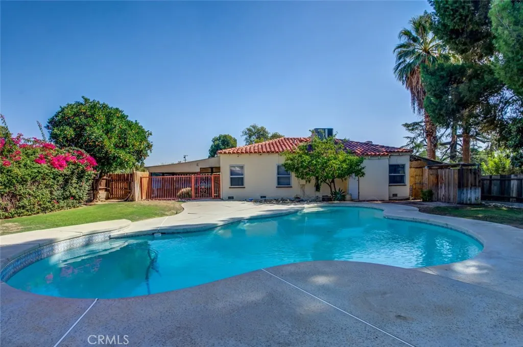 Welcome to Elmwood Ave! This charming home sits on a large lot and offers comfort, character and space to grow. Thoughtfully maintained it features 2 bedrooms, 2 bathrooms and a versatile bonus living areas downstairs ideal for guest suite, home office, gym or media room. Step inside to enjoy abundant natural light and wood flooring throughout the main living areas, complemented by freshly painted walls that give the home a bright, inviting feel. Outside, your private retreat awaits with mature fruit trees a covered patio with a sparkling pool perfect for entertaining, relaxing or hosting unforgettable gatherings. Nestled in Bakersfields established La Cresta neighborhood, this home combines timeless charm and everyday convenience with easy access to shopping, dining, parks, and commuter routes.