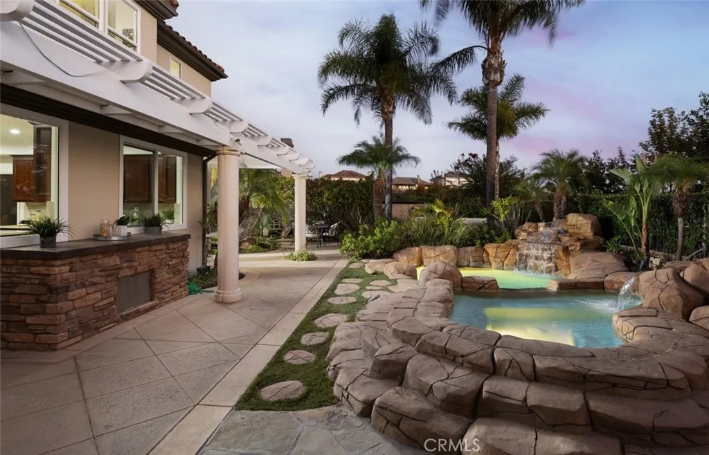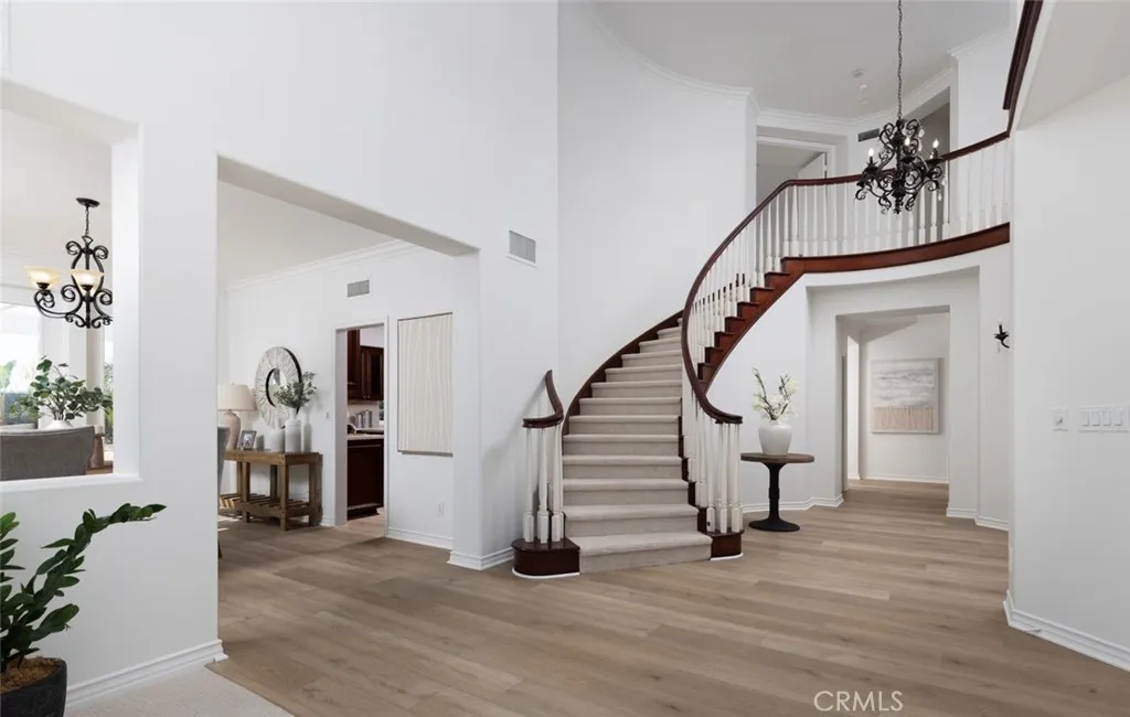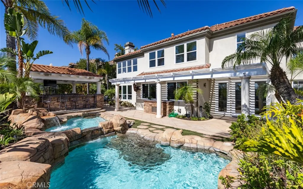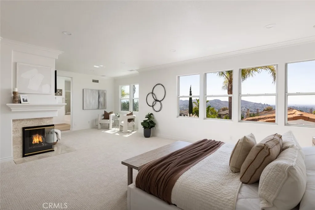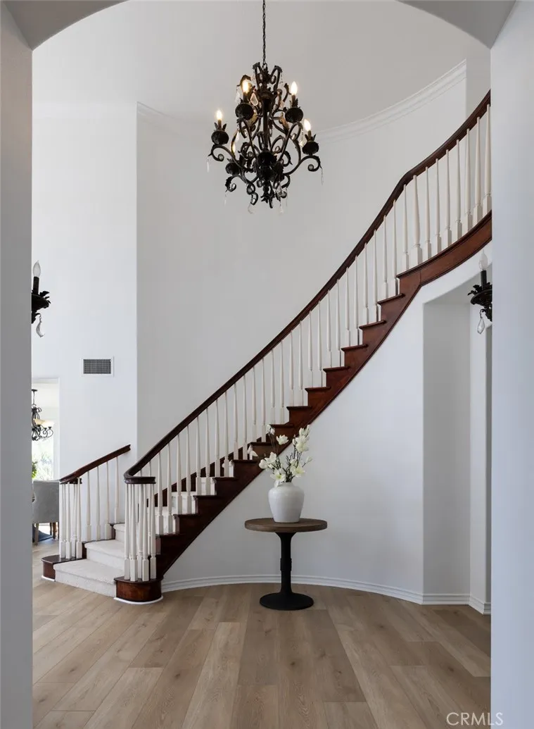 RENOVATED LUXURY HOME | PANORAMIC VIEWS | SPARKLING POOL & SPA | EN-SUITE BEDROOMS | GATED PARKRIDGE COMMUNITY | Welcome to 6336 E Cedarbrooks Avenue, a stunningly updated home located in the prestigious gated community of Parkridge in Orange. With five spacious bedrooms, five and a half bathrooms, and a separate office, this expansive two story property offers the perfect combination of elegance, comfort, and functionality, ideal for modern living and entertaining. Completely renovated with a designers touch, the home features fresh interior and exterior paint, brand new luxury vinyl plank flooring, plush new carpet, custom countertops, and beautifully remodeled bathrooms. From the dramatic curved staircase to the soaring ceilings and abundant natural light, every space has been thoughtfully refreshed with timeless style and quality. At the heart of the home is the oversized chefs kitchen, complete with quartz countertops, rich wood cabinetry, a center island, and stainless steel appliances. It opens directly to a spacious family room with built-in speakers and walls of windows that showcase the lush backyard and hillside views. A formal living room with two story ceilings and a separate dining room provide even more space to gather. The flexible floor plan includes a downstairs en-suite bedroom, perfect for guests or multi generational living. Upstairs, each of the four additional bedrooms has its own private bathroom, offering privacy and convenience for every member of the household. The expansive primary suite features a wall of windows with panoramic views, a spa-insp