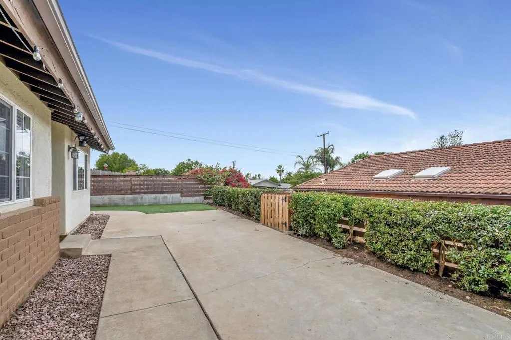 Welcome to 157 Belfast in Escondido, CA, where modern living meets comfort in this charming 3-bedroom, 2-bathroom home. Spanning 1,154 square feet, this residence offers a seamless blend of functionality and style, perfectly situated on a 4,791 square foot lot. Step inside to discover a spacious interior featuring vaulted ceilings that create an airy and open atmosphere. The family room invites you to unwind by the wood-burning fireplace, while the combination of carpet and tile flooring adds a touch of elegance to every step. The well-appointed kitchen comes equipped with essential appliances, making meal preparation a delight. Enjoy the comfort of air conditioning on warm days produced by the owned solar panels, ensuring a pleasant environment year-round Outside, the low-maintenance artificial turf in both the front and backyard offers a lush, green space without the hassle of upkeep. The covered patio is perfect for outdoor gatherings or a quiet retreat, providing a private outdoor oasis.