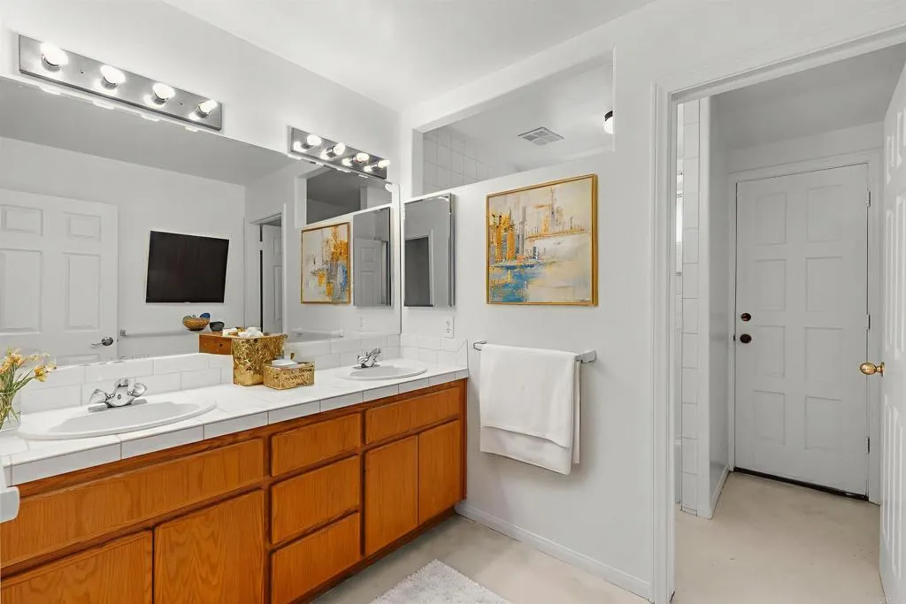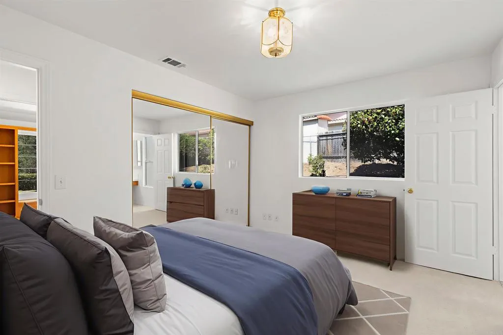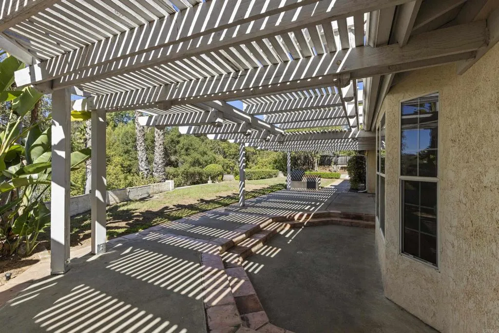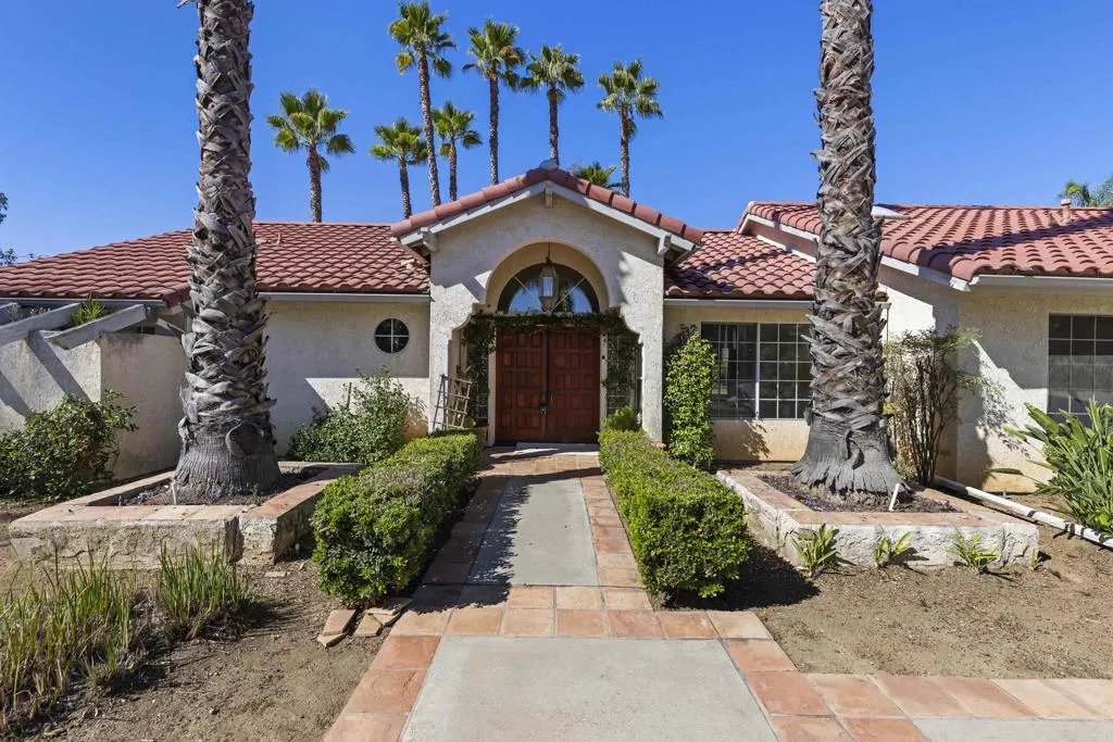 Ranch-Style Single-Story Home on Corner Lot! Escondido home offers a unique and spacious layout, with a bedroom suite in each wing for ultimate privacy. Master suite features french doors that lead out to the patio. Master bath has natural light with an inviting oversized tub, walk in closet, dressing table, and separate toilet room. The open floor plan creates a welcoming and airy atmosphere, perfect for both relaxation and entertaining. The home features a three-car garage and sits on a bi-level lotallowing for a large upper yard that overlooks the lower level, providing a sense of space and tranquility. Perched at the top corner of the street to take full advantage of the surrounding views, making it the perfect retreat.