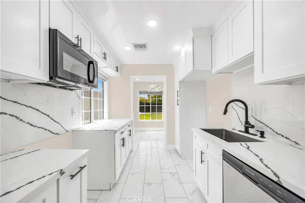Discover modern living in this beautifully and completely remodeled single-family residence in the heart of Reseda! This turn-key home features 4 bedrooms and 2 stylishly updated bathrooms across 1,200 sq ft of thoughtfully designed living space. Every inch of this home has been updated for style, comfort, and peace of mind. Step inside and be impressed by the top-to-bottom renovation. Gleaming, beautifully finished floors flow throughout the home, complemented by fresh whole-home paint and chic designer roller shades. Upgraded Kitchen boasting new cabinetry, granite countertops and modern finishes is ready for your culinary adventures. Both bathrooms have been completely renovated with contemporary fixtures and finishes, bringing a spa-like retreat. Peace of mind comes standard with a brand new roof overhead. Outside, enjoy California living with new landscaping and low-maintenance artificial turf in both the front and back yards, providing ample, always-green space for relaxation, play, or entertaining. No detail has been overlooked in this meticulous renovation. If you're seeking a truly move-in ready home where all the work has been done for you, look no further. Schedule your private tour today and experience the perfect blend of style, comfort, and convenience! Some photos have been virtually staged to show potential layout.