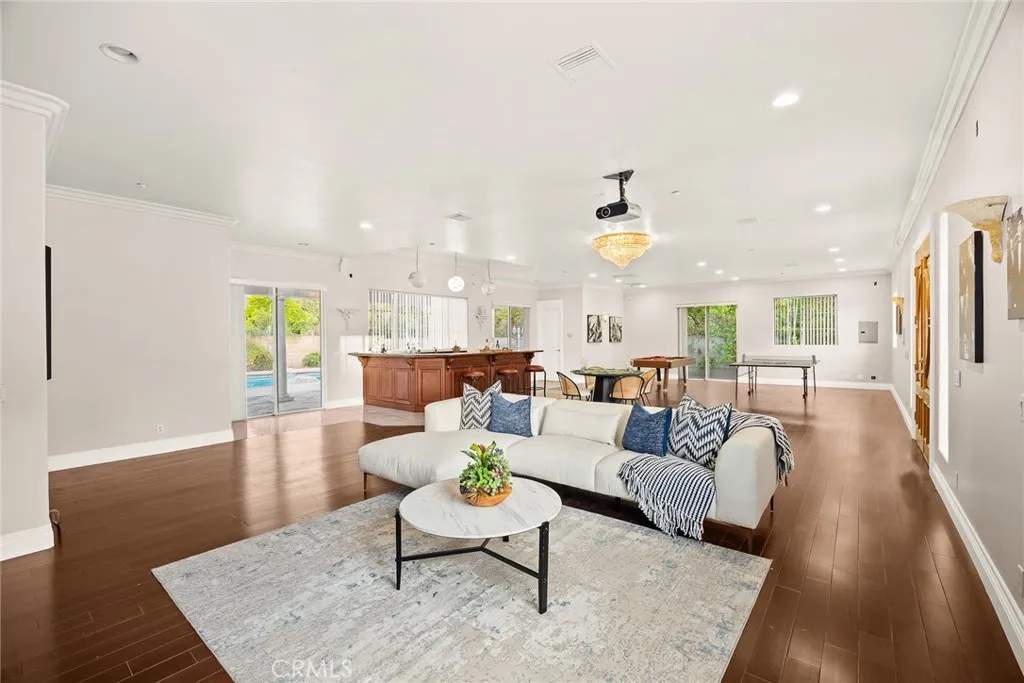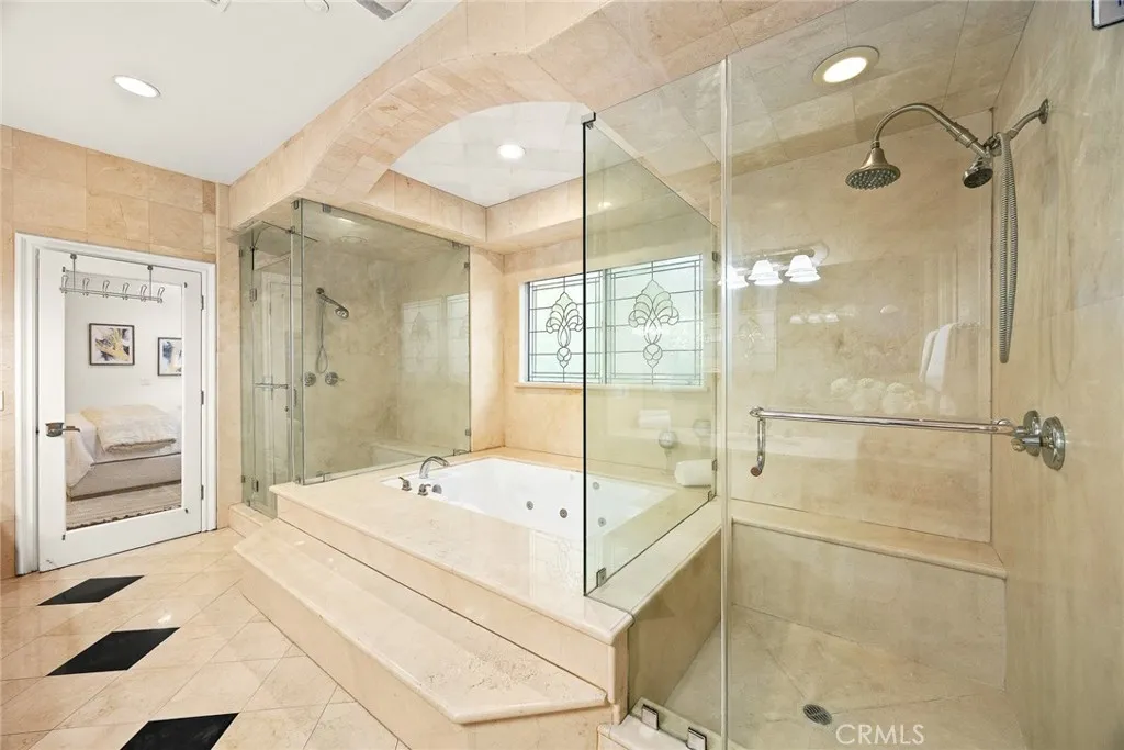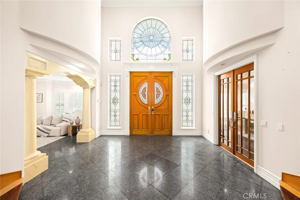 This Gorgeous & Elegant 2 story custom estate located on Beautiful and Quiet neighborhood with distinguished Arcadia School District. It features private security gated, stately 2 column studded entrance leads to a grand foyer under cathedral ceiling featuring a magnificent crystal chandelier. Downstairs of the main house: wood-paneled library; marble-floored living room; large newly remodeled built-in shelf for ample storage spaces . Family room with a newly build wet bar connected to the fully remodeled gourmet kitchen behind dining room and a fully remodeled separate wok kitchen. 2 bedroom suites, plus a 1/2 bath as the powder room for guest. Upstairs: 2 hard wood staircases connected downstairs; 4 bedroom-suites with common area for study or recreation; Jacuzzi tub, steam room, 3 walk-in closets and retreat area inside the master suite against with beautiful view of San Gabriel mountains. Palm trees surround the detached guest house(1500 sqft) with permit for entertainment , Sparkling pool and water fountain. Refinements such as marble, stone, custom-made cabinetry, drapes and built-ins are evident throughout with many stained-glass windows. Front yard features circular driveway and garden with year-round roses and fruit trees. 3-car attached garage plus plenty of car parking space. Walking distance to schools, super-market and multi-cultural eateries. A Great opportunity to own this Luxurious Home !!!