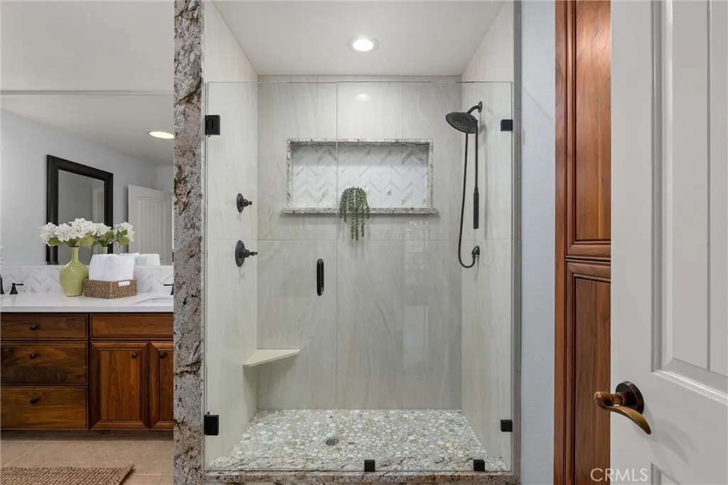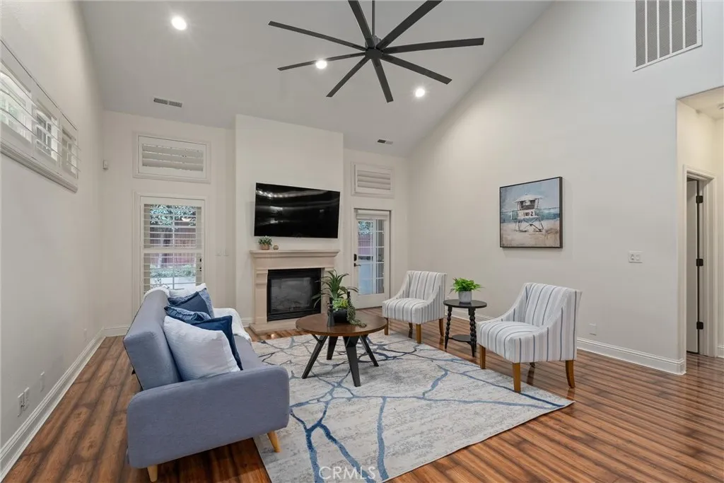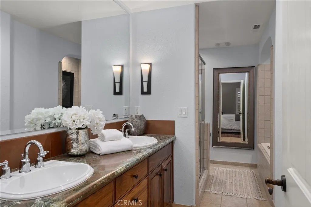Welcome to 79 Veneto Circle, nestled in the prestigious Sorento community, where timeless elegance meets modern comfort. Step through a grand entry framed by graceful archways and soaring ceilings into a home rich with architectural beauty and refined finishes. Elegant window shutters, custom ceiling fans, and designer lighting enhance every space. This luxurious two-story residence offers 3 bedrooms, 2.5 baths, an open upstairs office, and two primary suites. The upstairs primary features a private balcony with designer wrought-iron railing, a large custom-tiled shower, dual sinks, and elegant lighting. A guest bedroom shares the balcony, while the third bedroom provides cozy comfort. The downstairs spacious primary suite offers a private retreat with high ceilings, an oversized walk-in closet, walk-in shower, soaking tub, and direct access to the tranquil patio with a built-in outdoor barperfect for morning coffee or evening relaxation. The living room exudes warmth with a gas fireplace and airy ambiance. The chefs kitchen is a dream come true with rich cherry wood cabinetry, granite countertops, a large island, breakfast bar, walk-in pantry, and solar tube lighting. Additional highlights include a designer wrought-iron staircase, finished two-car garage, newer HVAC, dual mini-split systems, and a tankless water heater. The backyard oasis offers shaded trees, flower beds, and peaceful charm. Experience luxury and sophistication at 79 Veneto Circlea true Sorento gem.