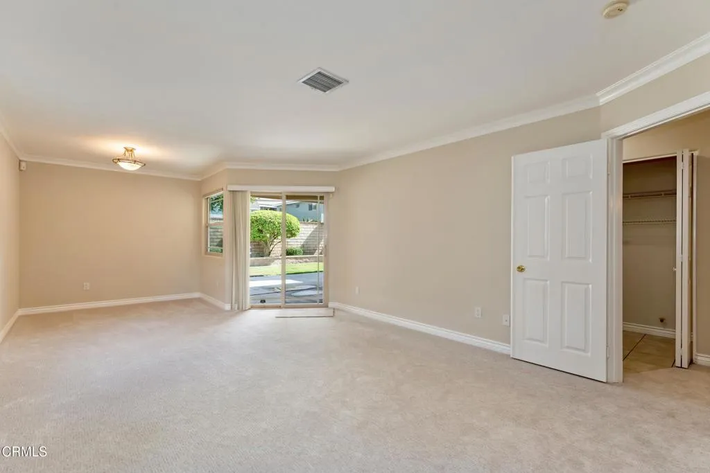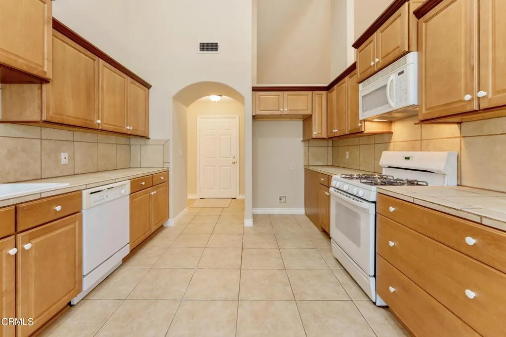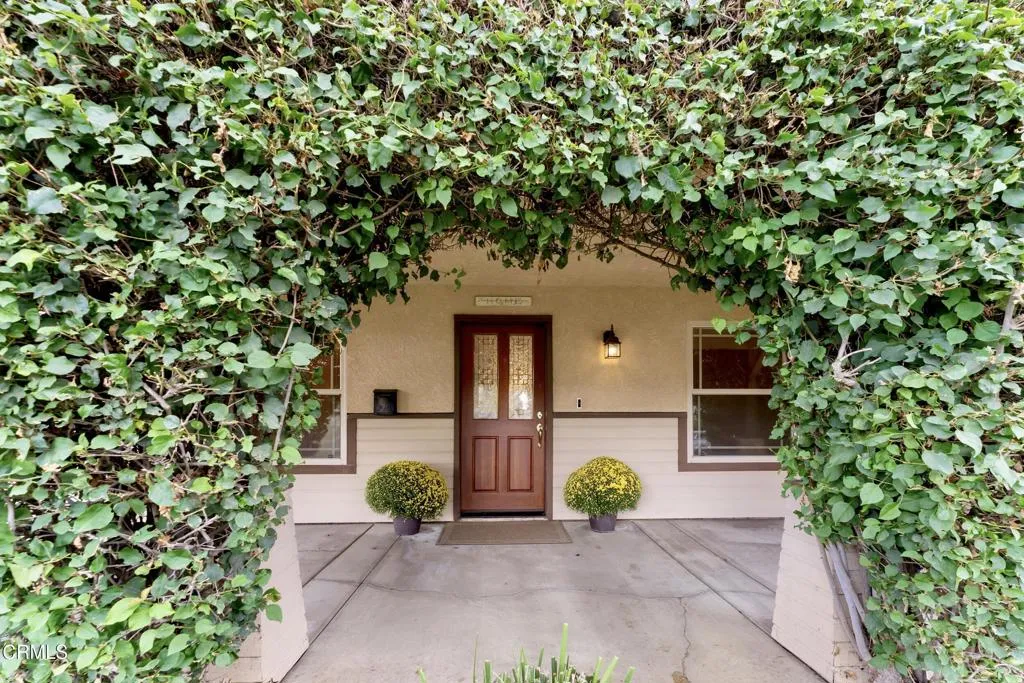 Built in 2002, this home combines modern architectural elements with thoughtful, practical details. This 4-bedroom, 3-bath home offers 2,468 sq. ft. of open living designed for easy everyday living.From the moment you step inside from the beautiful front veranda framed by arched bougainvillea, you will be captivated by the soaring ceilings and sun-drenched rooms. The home creates a feeling of endless spaciousness offering big spaces with dramatic lines. The great room flows effortlessly into a family room with fireplace that opens to the enclosed backyard, offering a private outdoor retreat. They kitchen opens to the family room. The breakfast bar and plethora of cabinetry are perfect for a comfortable family lifestyle. The home's split layout offers two separate wings with two bedrooms on each side, offering privacy and the flexibility for multi-generational living. The primary suite is a sanctuary, with dual walk-in closets and a spacious bathroom with dual sinks and a handicap-accessible soaking tub. Direct access to the enclosed backyard where there is a private space to relax. There is a secondary front facing bedroom that could be a perfect home office. Additionally there is a separate bathroom with access to the backyard, a large hallway closet and indoor laundry. The second wing features two bedrooms and a full bathroom. Accessible via a pull-down stairs in the hallway is a spacious attic, offering an incredible storage space. Fresh paint and new carpeting throughout make the home feel like new. The attached two-car garage with direct access to the home and the yard