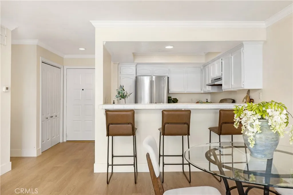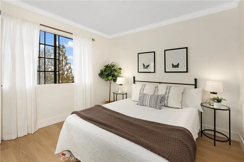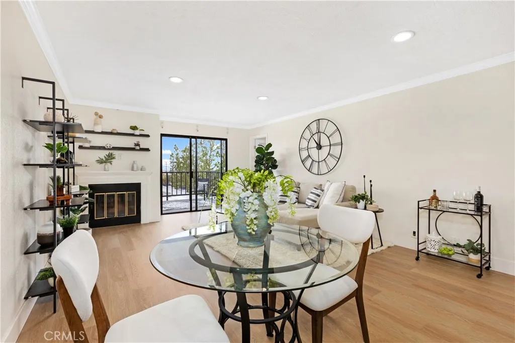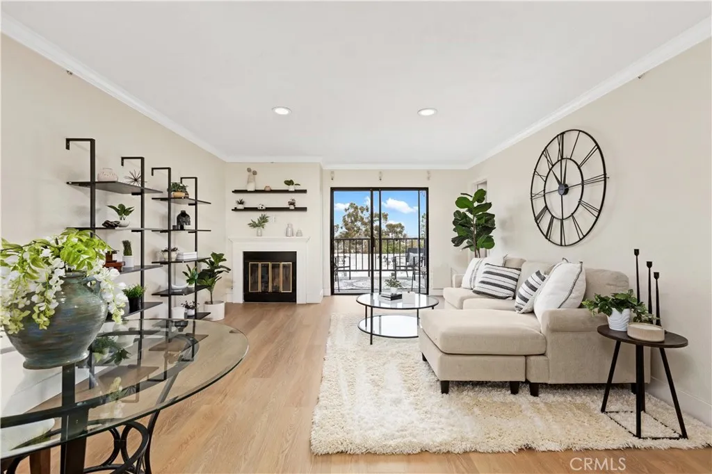 Do not miss the opportunity to own this elegantly designed one-bedroom condominium, ideally situated in the highly desirable Signal Hill community. This residence offers sweeping city light vistas and captivating panoramic views from its private balcony. The thoughtfully designed open-concept floor plan welcomes you with newly installed designer plank flooring that flows seamlessly throughout the home. The kitchen showcases recessed lighting, pristine white cabinetry, freshly glazed countertops, and a convenient breakfast bar that opens gracefully to the dining area and spacious living roomaccented by a cozy fireplace and direct balcony access. Step outside to experience breathtaking views that extend from the glittering cityscape to, on clear days, the iconic Hollywood Sign. The expansive primary bedroom features a versatile bonus room separated by sliding paned doors, ideal for use as a nursery, home office, or intimate retreat. Both the kitchen and bathroom have been newly glazed, providing a polished, like-new appearance. Additional conveniences include a private gated garage, reserved underground parking with elevator access directly to the unit, and a second reserved parking space. Upgrades include a newer air conditioning unit, water heater, and in-unit washer and dryer. Residents also enjoy access to an array of community amenities, including a spa, clubhouse, ping-pong room, fitness center, recreation area, bicycle storage room, and ample guest parking. This exceptional property is conveniently located near premier restaurants, shopping, theaters, and major freeway