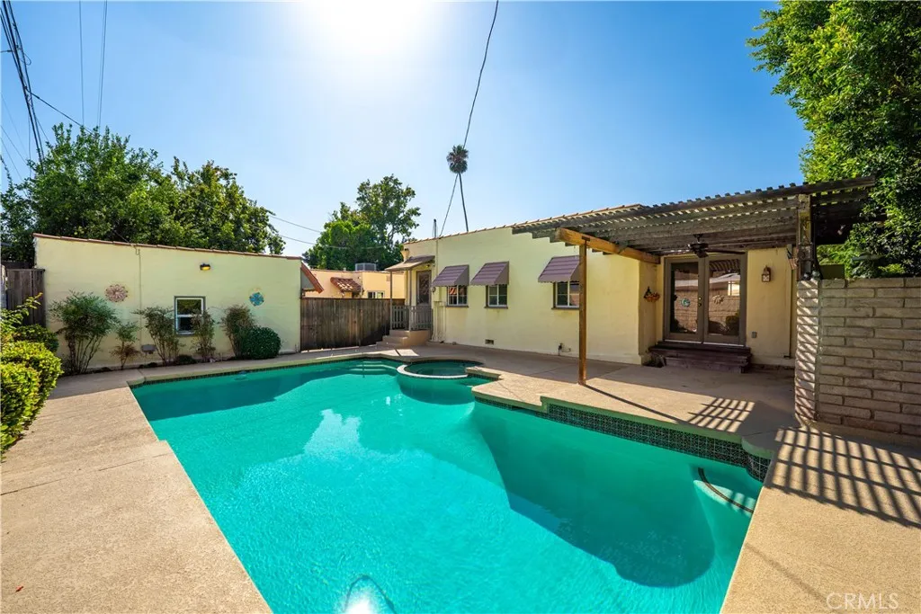 Absolutely exquisite Spanish home in the highly desirable Glenwood neighborhood located in NW Glendale. This fabulous home boasts charm and character throughout with a welcoming front porch, beautiful archways and a sparkling pool and spa in the backyard. The gorgeous kitchen features granite counters, upgraded cabinets, recessed lighting and stainless steel appliances. All three bedrooms are very spacious with the primary offering direct access to the back patio and pool area. The bathroom includes granite counters, updated vanity and adorable tile accents. The home also has a cute sunroom, hardwood floors, new carpet and a detached garage with ADU potential. Located within close proximity to Kenneth Village, historic Brand Park, top-rated schools, Disney, DreamWorks and ABC7.