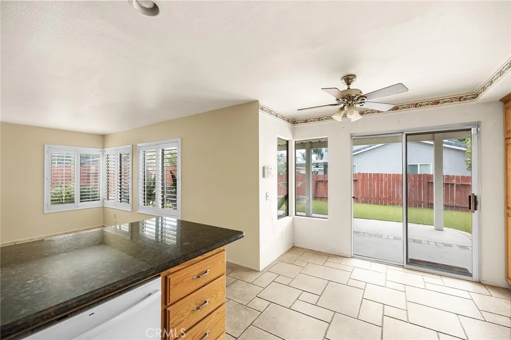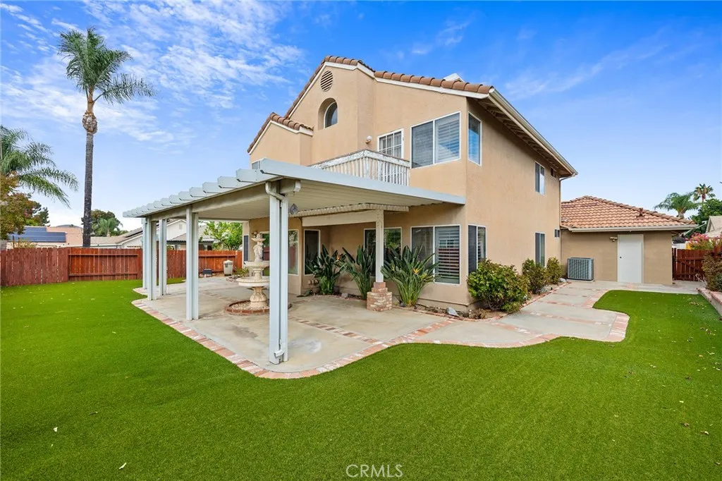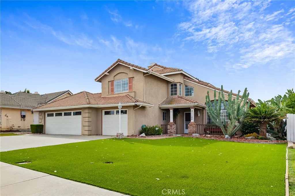 Welcome to this 4-bedroom, 3-bathroom home in the highly sought-after Country Gardens community, featuring super low HOA fees and taxes, offering tremendous potential and an ideal blend of comfort, functionality, and prime location. The thoughtfully designed floor plan features a kitchen that seamlessly overlooks the inviting family room, complete with a charming brick fireplace, creating the perfect space for gathering and entertaining. The main level impresses with a convenient bedroom and full bathroom, ideal for guests or multi-generational living, plus clever extra storage tucked under the stairs. Formal living and dining rooms boast soaring vaulted ceilings and an abundance of natural light, adding an elegant touch to your daily living. Upstairs, retreat to the spacious master suite featuring a private deck and ensuite bathroom, while two secondary bedrooms share a convenient Jack-and-Jill bathroom. Elegant plantation shutters throughout the home provide style, privacy, and light control. The home's practical features include a whole-house water filtration system, newer furnace and water heater for peace of mind, and a laundry room equipped with a sink for added convenience. The expansive 3-car garage provides ample space plus extra storage cabinets to keep everything organized. Both front and back yards showcase beautiful drought-resistant landscaping, perfectly suited to California living, while the oversized backyard offers endless possibilities for outdoor enjoyment, gardening, or play. Situated in an exceptional location with easy access to local colleges, shoppi