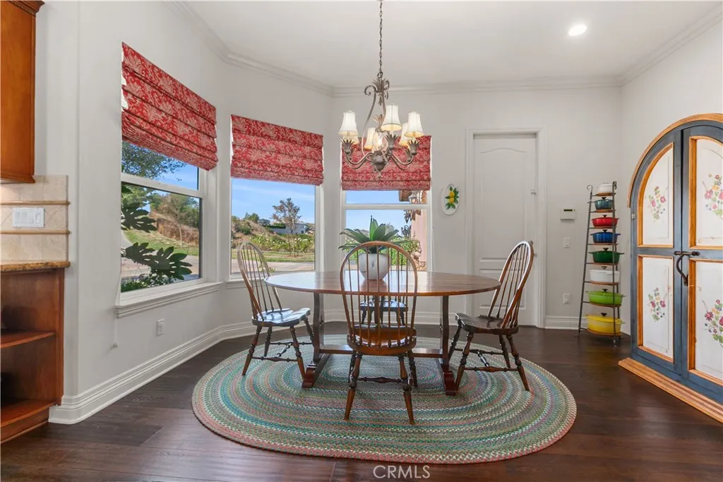 Breathtaking Panoramic Picturesque Views of Surrounding Hills and Valleys, Tranquility and Privacy. Elegant and Timeless De Luz Residence Impeccably Maintained and Beautifully Curated. Located Just Minutes from Historic Old Town Temecula (EST. 1859) and Temecula Wine Country. Stunning Drive Through Del Luz Roads with Majestic Oak Trees and Orchards, Adding Charm and Almost Magical Sense. On a Clear Day You Can Catch a Glimpse of Ocean View before heading Down Large Private Circular Driveway, and if you look left, during the Winter and Spring You Might see the Snow of San Bernardino National Forest. Impressive and Inviting Curb Appeal. Welcoming Front Porch, Lead Glass Double Door and Cathedral Ceiling Entry. Living Room with Curved Wall Enhancing Stunning Views. Gleaming Oil Rubbed Oak Flooring Throughout, Open Floor Plan Flooded with Natural Light. Formal Dining Room Adjacent to Gourmet Kitchen that Includes Oversized Center Island, Butler's Pantry, Wine Cellar, Walk-In Pantry and Spacious Breakfast Nook. Kitchen Opens to Incredible Family Room with Remarkable Beams, Fireplace and Two Sets of French Doors Leading to Covered Patio. The Primary Suite Includes Fireplace, Two Oversized Walk-In Closets and Large Retreat/Library that can be easily turned into a Fifth Bedroom, Nursery or Gym. Adjacent to the Primary Suite is also Spacious Office with Two Built-In Desks. The Left Wing of this Extraordinary Home Comprises Three En-Suite Bedrooms, All Offering Truly Magnificent Views. Resort Style Backyard Includes Several Patios, Swimming Pool, Spa, BBQ Island, Horseshoe Pit, Mega