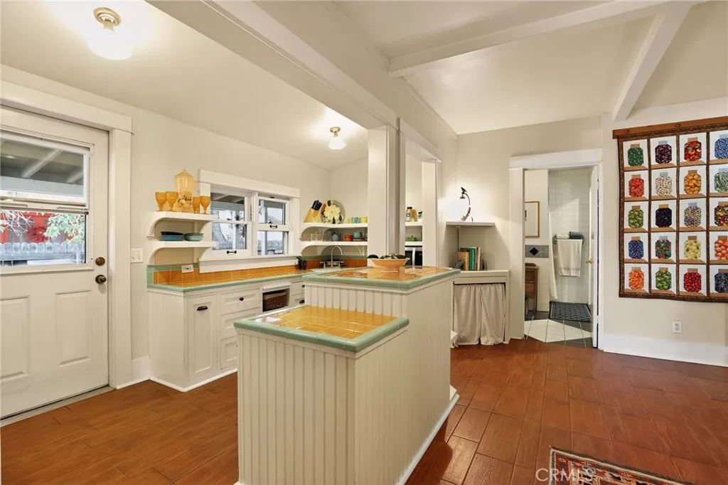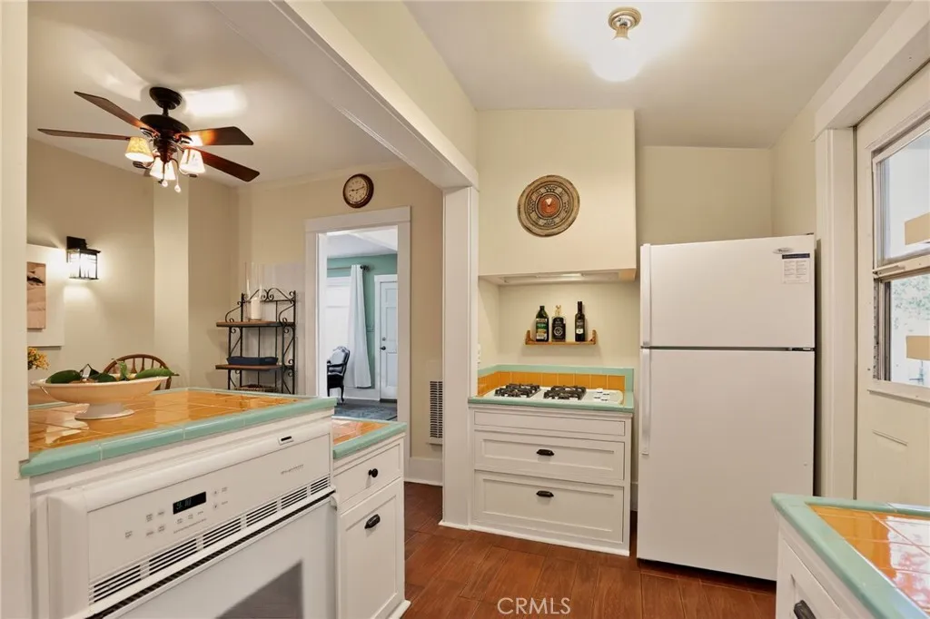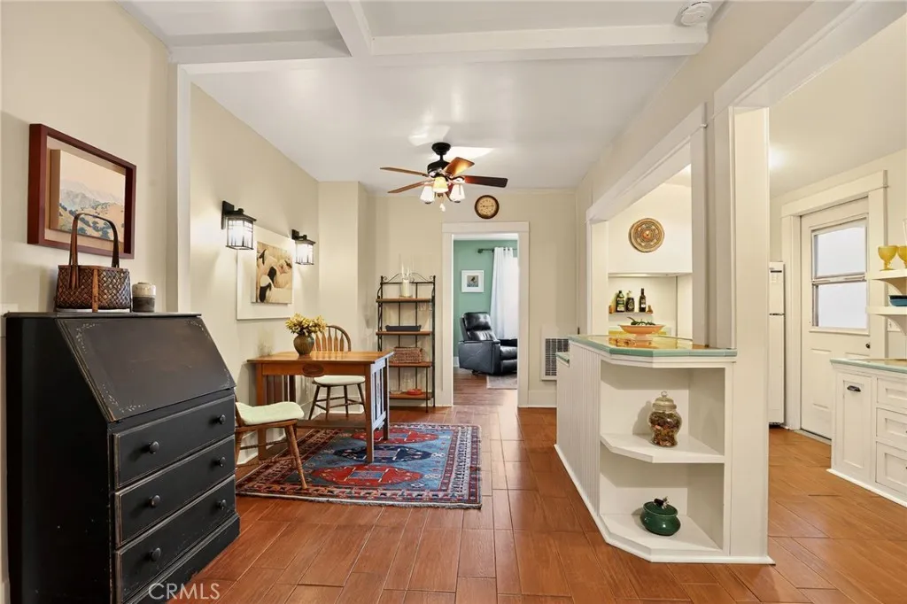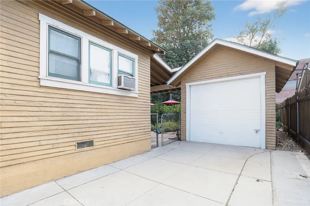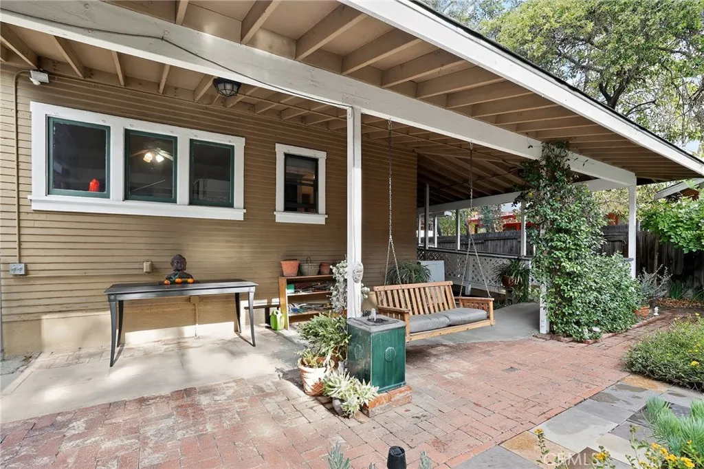 This single-story Craftsman Bungalow features 2 bedrooms, 1 bath, and a detached garage. It is located in the HERITAGE SQUARE HISTORIC DISTRICT and is being sold in as-is condition. Historical details indicate that the historic name is the "James O. and Maud McCall House," which was built by J.T. Nicholson. This simple one-story Craftsman residence includes Colonial Revival details. Craftsman features include a cross-gabled roof with slightly extended eaves and exposed rafter tails. The partial-width porch has a closed brick masonry railing. A trellised porte cochere extends to one side of the structure. A band of vertically placed window panes forms a header across the large rectangular front windows. The Colonial Revival influence is displayed in the classical columns supporting the front porch. The exterior is covered with clapboard siding, and a picket fence encloses the property. Inside, the living room features wood flooring and traditional 1920s built-in shelving, cabinetry, windows, and moldings. The restored kitchen and bathroom maintain the original vintage feel, featuring vibrant tile, cabinetry, and shelving a style that continues into the hallway, linen storage, and bedrooms. Outdoors, step through the kitchen door, down the covered patio, into your private backyard oasis. Follow the pavers to a charming hammock hut, your perfect spot for an afternoon nap. A separate concrete slab area offers a clean, stable space to relax under the shade and fresh scent of the tangerine fruit tree. The location is within walking distance of downtown Riverside, offering a varie
