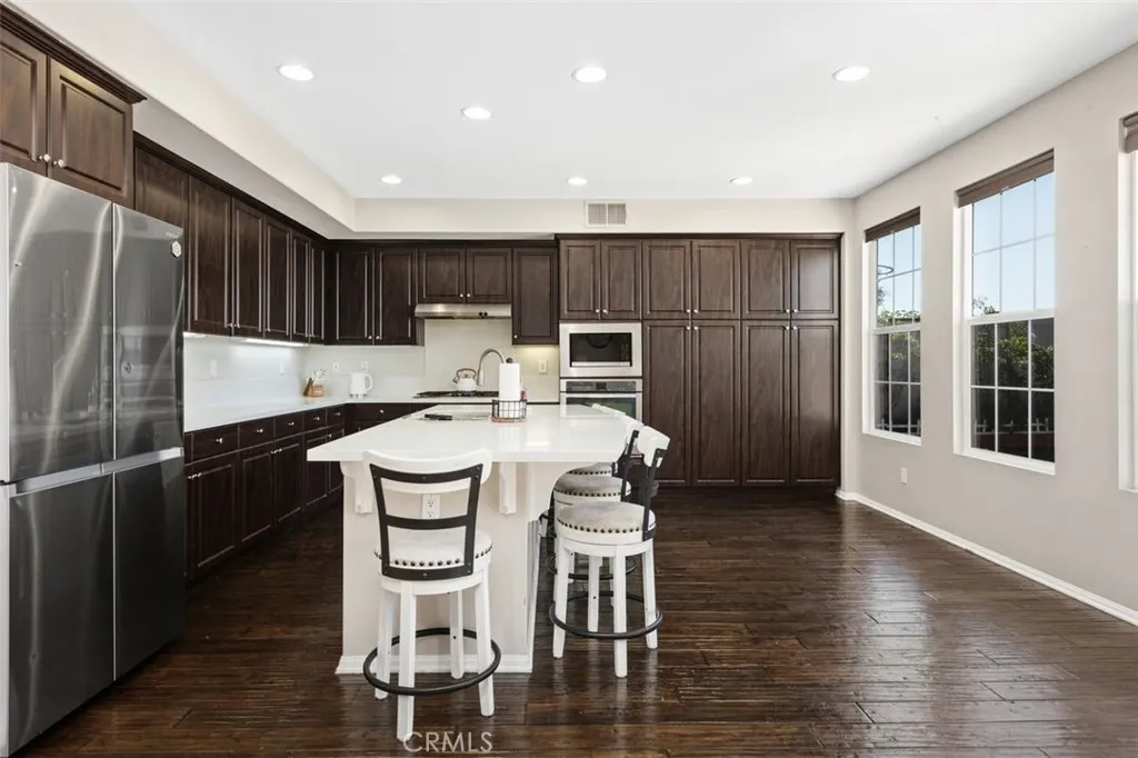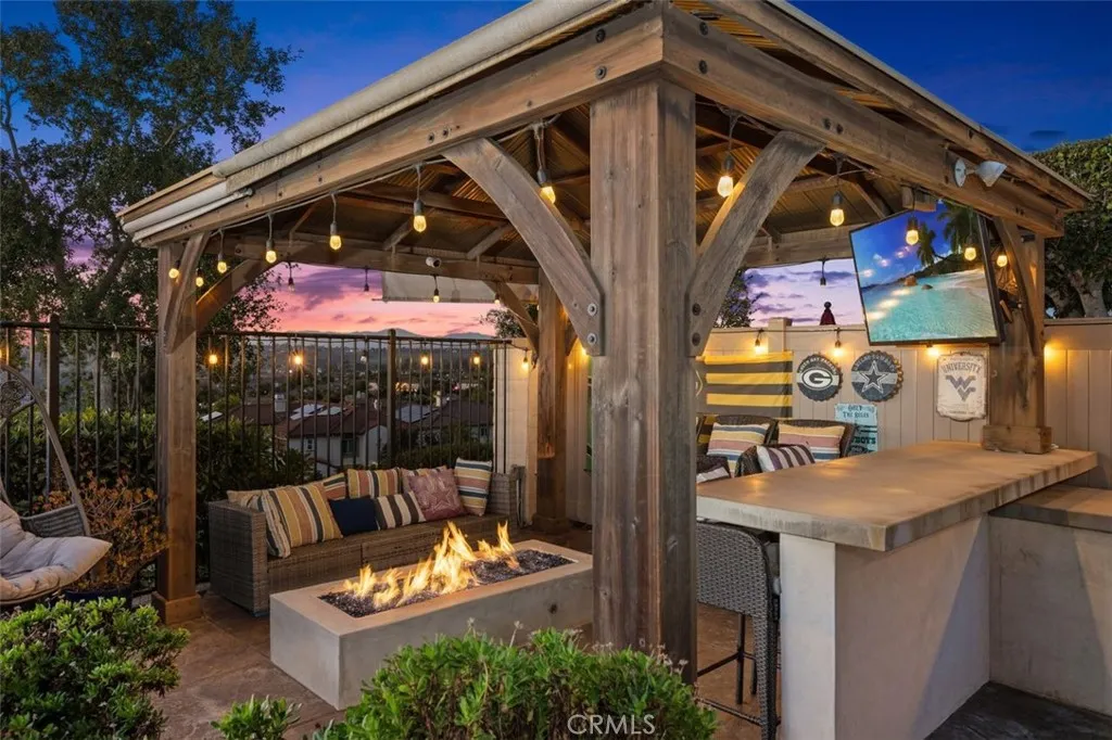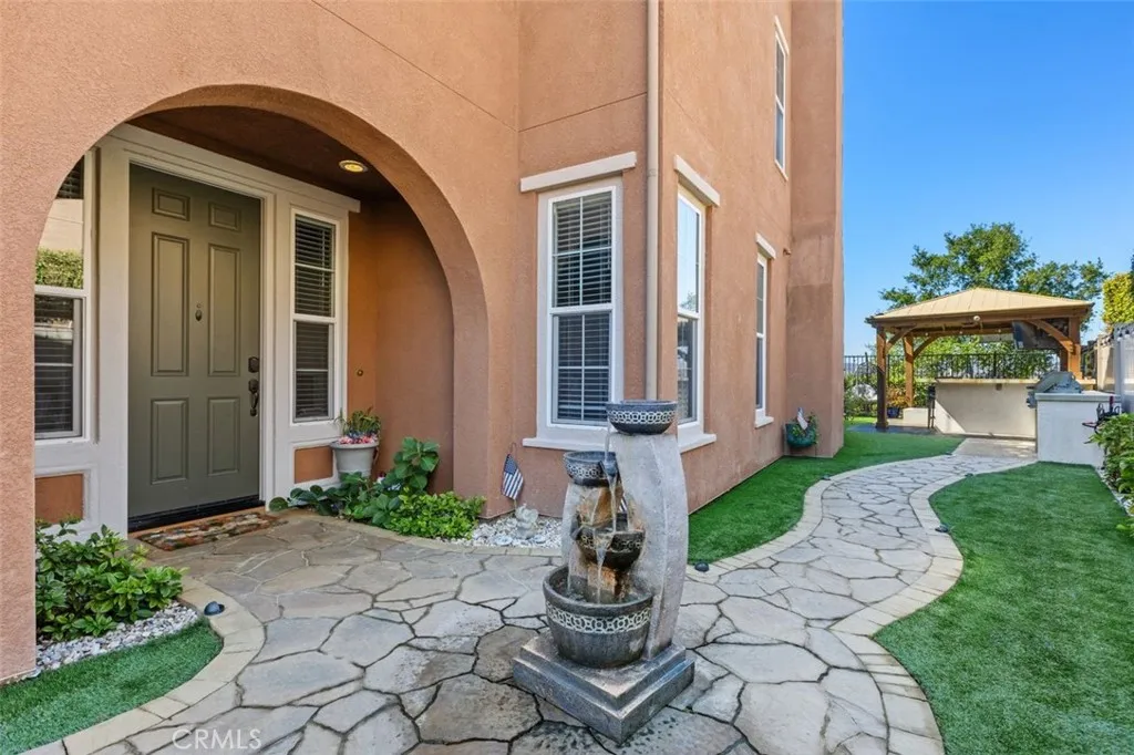 PANORAMIC SUNSET VIEWS! SPACIOUS LAYOUT! DOWNSTAIRS ENSUITE! Located in the highly desirable Arrowood Community, this stunning 4-bedroom, 3.5-bath home offers 3,080 sq. ft. of beautifully designed living space with breathtaking westerly hilltop views. The open-concept kitchen features quartz countertops, a large center island with bar seating, stainless steel appliances, and rich dark wood cabinetry, all complemented by engineered hardwood floors downstairs. It flows seamlessly into a spacious family room with a cozy fireplace and a large dining room, perfect for gatherings and entertaining. A first-floor ensuite bedroom provides flexibility for guests or multigenerational living. Upstairs, the spacious primary suite offers a private balcony, walk-in closet, soaking tub, separate shower, and dual vanities. The upper-level also features luxury vinyl plank flooring, two additional well-appointed bedrooms with walk-in closets and a Jack and Jill bathroom, a spacious family room, a dedicated office, and a convenient upstairs laundry room. Step outside to your entertainers backyard, featuring artificial grass, a gazebo, fire pit, BBQ grill, and a bar area with refrigerator and sinkall framed by unobstructed panoramic sunset views. The home also includes a 3-car garage and Solar panels providing energy efficiency and cost savings. Residents of Arrowood enjoy resort-style amenities, including a Jr. Olympic-sized pool, clubhouse, walking trails, and community parks. Golf enthusiasts will love the nearby Arrowood Golf Course, one of North Countys most scenic and playable courses. Lo