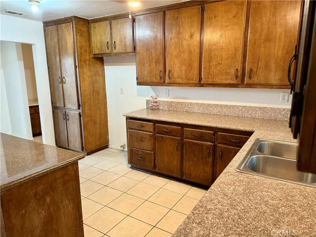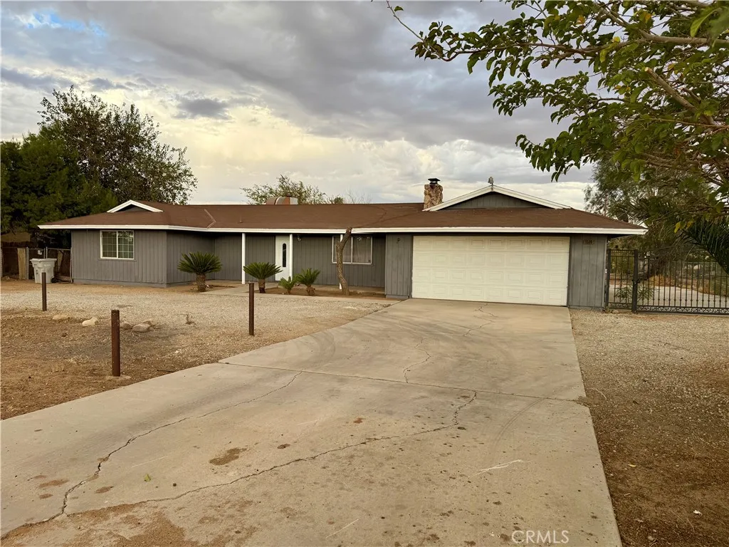 Hesperia 3 bedroom 2 baths, spacious dining and living room combination with a fireplace, good size kitchen granite countertops, newer dual pane windows sliding door, front door, new door connecting to garage, 2 car garage plus a detached garage seller was in the process of an ADU conversion fenced and cross fence, lots of trees, near Bear Valley for easy access to frwy.