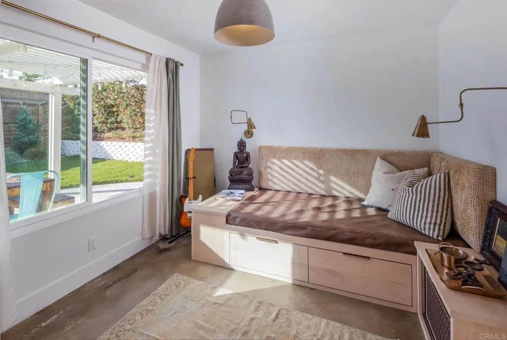 This beautifully remodeled single-story 3-bedroom, 2-bathroom home nestled in the highly desirable Village Park neighborhood of Encinitas is for the future owner who wants their family to live in style and comfort. Thoughtfully renovated from top to bottom, this move-in-ready gem features elegant polished concrete floors, a custom built out living room and den, fully renovated bathrooms and kitchen, and a custom breakfast nook that is the definition of style and convenience. Abundant natural light fills the open living room creating a bright and airy atmosphere throughout. The primary suite offers an attached bathroom, a custom closet, doors to the backyard, a luxurious ensuite bath with a dual vanity and a stunning, newly designed shower. This home is equipped with a full array of modern upgrades, including new HVAC, a tankless water heater, and solar panels for energy efficiency. Step outside to enjoy the expansive, professionally landscaped lawn-perfect for entertaining with its outdoor tables and seating around the fire chimney. The lush lawn is ideal for relaxing under the Encinitas sun. With a low HOA of just $75/month, residents have access to a community pool, tennis courts, parks, and more. This home is ideally located just three miles from the beach. It is close to Flora Vista Elementary and other top-rated schools, shopping, dining, and easy freeway access. This gem of a home truly offers the best of modern coastal living.