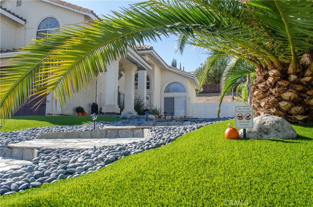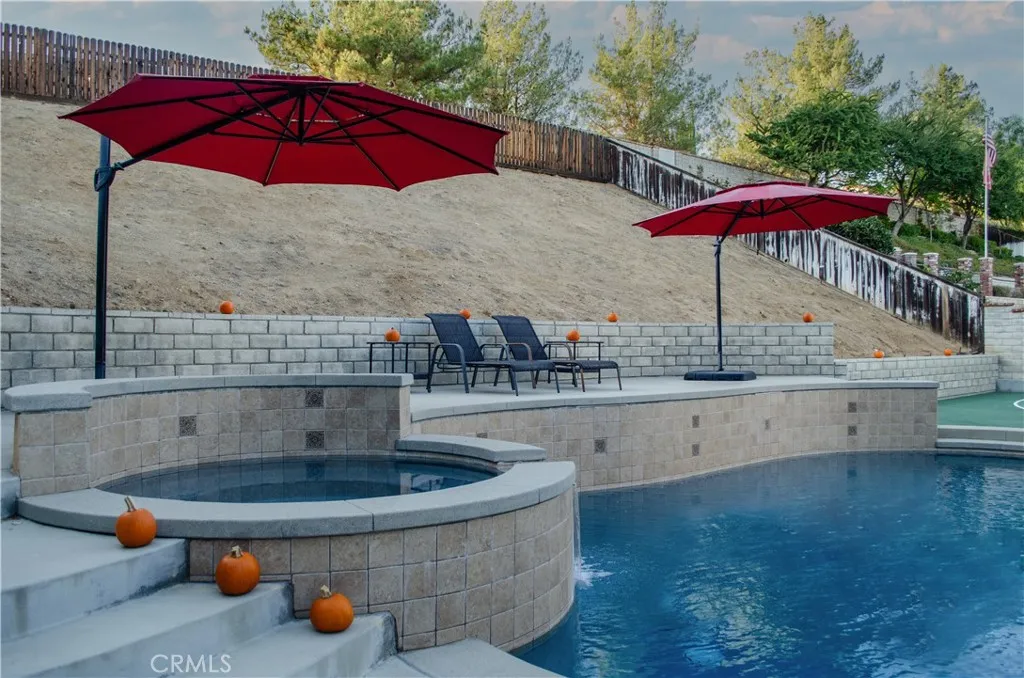 Stupendous 4 bedroom + 3 baths + loft, Pool home with paid SOLAR and park quality 1/2 size basketball court! This well cared for home offers fantastic curb appeal with stone slate hardscape, beautiful faux wood garage doors, and gate with side yard room for outdoor toys / RV, and other storage, including pool equipment and pump, and AC unit. The front yard is expansive and low maintenance with vibrant turf situated on a cul-de-sac street. The double door entry welcomes you inside to cathedral ceilings, plantation shutters, laminate wood flooring throughout with open living, dining, and family areas all open to the kitchen with countertop bar seating, and a downstairs bedroom & upgraded 3/4 bathroom with step-in shower. Stainless steel appliances stay with the kitchen as does the backyard patio furniture, umbrellas, 2 built-in shade covers (which extend from the patio cover to the pool's edge), the downstairs washer / dryer set in the laundry room, and the cabinets in the garage with work bench area. The kitchen faces the family room with a gas fireplace & views through the glass slider door to the pool and covered patio! There are 2 NEST thermostats and a loft upstairs which has a sectional couch also included in the price of the home. Ceiling fans are in all bedrooms and family room and loft. There is NO HOA and NO MELLO ROOS! This neighborhood is close proximity to shopping centers, nearby restaurants, and the freeway. The elementary, jr. high and high school are close too - buyers to verify the local school district for information. Preview today! This is the home you ha