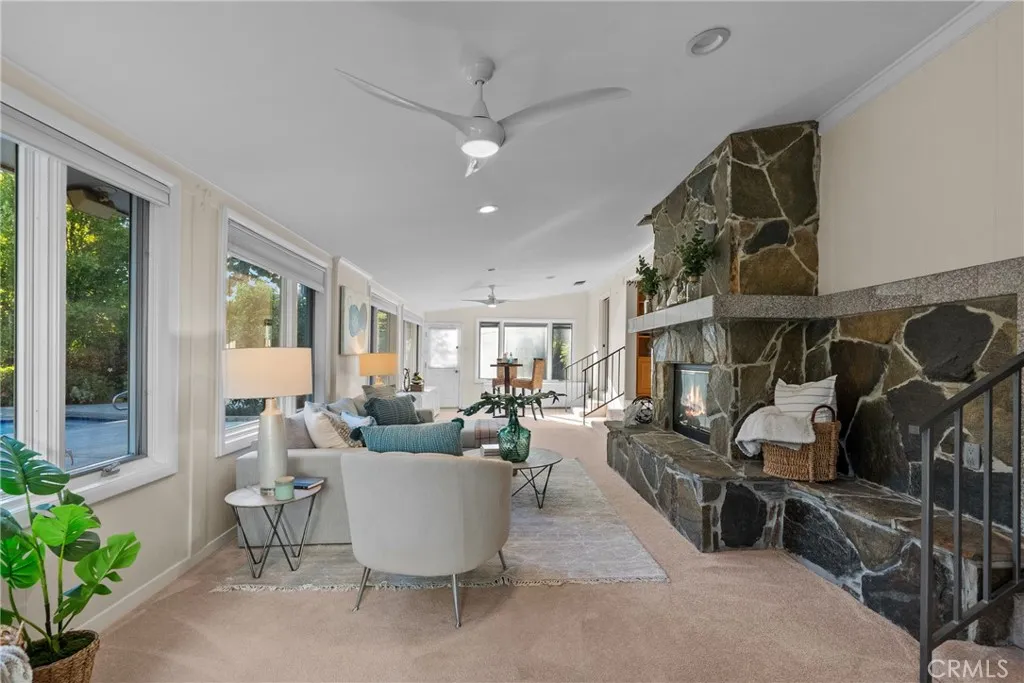 Welcome to 19200 Ballinger Street, a classic California residence tucked within the prestigiousChteau Highlandsneighborhood. Lovingly cared for by the same family for more than six decades, this timeless property rests on a beautifully landscaped17,500 sq ft corner lotframed by mature trees and lush gardens offering both privacy and an enduring sense of warmth.Inside, youll findfive generously sized bedroomsandthree tastefully updated bathrooms, blending modern comfort with mid-century charm. Theremodeled kitchenfeatures custom cabinetry, granite countertops, and updated stainlesssteel appliances a perfect gathering spot that opens to the inviting dining and living spaces. Theupdated bathsprovide a fresh, spa-like experience with elegant finishes and thoughtful design.The spacious living room with its cozy fireplace and custom built in shelves, creates a natural flow between the indoors and the serene outdoor setting.Primary suite is generous in size with a great view of the rear yard and patio deck, stunning large updated bathroom with separate bath and oversized shower, bidet and toilet. Elegant and nicely planned.Step outside to yourprivate resort-style retreat complete with asolar thermal-heated, covered poolandelectric safety cover, ideal for swimming year-round. Theexpansive backyardalso offers a pickleball/sport court, garden areas, and multiple patios for relaxing, entertaining, or enjoying the sunshine in peaceful seclusion. Additional highlights include acircular driveway,ample parking, andfantastic curb appealthat perfectly complements the charm and character o