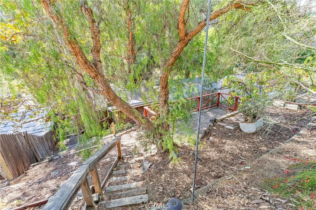 28751 Sycamore Drive, Silverado, CA 92676 is a rustic canyon retreat in the heart of Silverado Canyon, just minutes from Irvine, Foothill Ranch and the 241 Toll Road. Surrounded by mature trees, a seasonal creek and terraced outdoor spaces, this home offers a rare blend of nature, privacy and access to Orange County job centers and amenities. Per the assessor, 28751 Sycamore Drive is recorded as a 2 bedroom, 1 bathroom home. In addition to the two designated bedrooms, the property includes additional finished spaces that can function as a den, home office, studio or extra sleeping quarters, giving buyers flexible options for multi-use living, work-from-home needs or hosting guests. A wood and iron entry gate leads to a welcoming courtyard and elevated front deck with canyon views, a producing orange tree and space for lounging, grilling and outdoor dining. Inside, the main level features a spacious living room with high ceilings, log-style walls, hardwood floors and a wood-burning fireplace that creates a true cabin ambiance. A separate dining area with built-in buffet and stone accent detail connects easily to the remodeled kitchen, which offers white cabinetry, granite counters, an industrial-style center island and an adjacent utility / pantry room with full-size laundry. The main floor bedroom is wrapped in windows and includes a vintage built-in dresser, while the updated main-level bathroom has an exterior door for quick access to the side yard, pet area or garden. Upstairs, the additional finished areas provide multiple layout possibilitiesideal as a den, office, cre