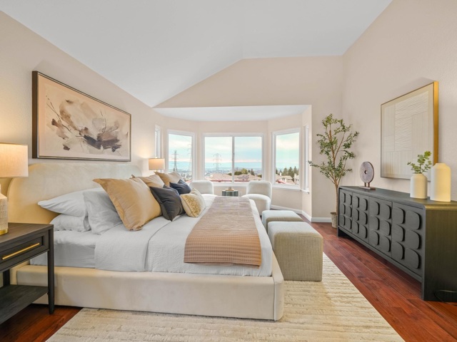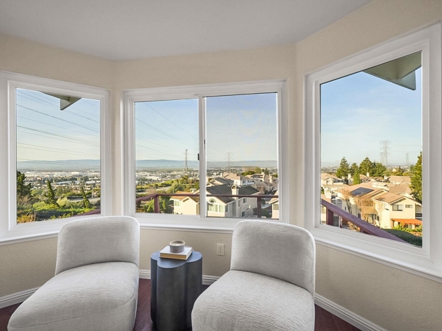 Experience the premier lifestyle of the Cameron Hills community at 43718 Cameron Hills Drive. This residence offers the perfect balance of hillside tranquility and unrivaled Silicon Valley access, situated within the prestigious Mission San Jose High School boundaries with a convenient commute to major tech hubs. As you enter the north east facing home, the light-filled 2,565 sq. ft. interior features soaring ceilings and expansive windows framing serene views of the Bay and rolling hills. A highly coveted downstairs bedroom and full bathroom provide the perfect setup for guests or multi generational living. The heart of the home is a chef’s kitchen with premium stone counters and double ovens, while the beautifully updated bathrooms offer modern, spa-like finishes. Step outside to a private sanctuary featuring meticulously landscaped front and back yards. The backyard is an entertainer's dream, boasting a built-in outdoor kitchen and a spacious deck to enjoy sunset views over the water. Move in with the added benefit of a fully owned solar electrical system. Additional highlights include gorgeous hardwood flooring, dual fireplaces, and a two-car garage. This is a meticulous retreat in one of Fremont’s most sought-after hilltop enclaves.