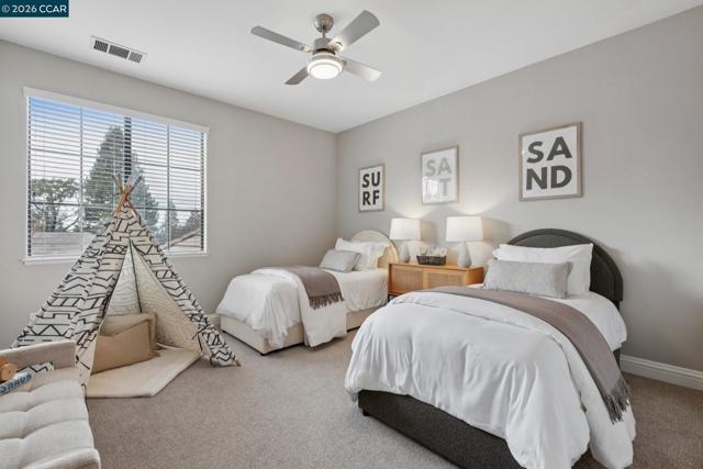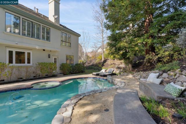 Set within Roundhill Country Club, 40 Oak Trail Court offers the lifestyle that draws people to Alamo in the first place; active, social, and centered around community. Golf, tennis, pickleball, bike rides, and the swim team become part of the weekly rhythm. Elevated above the street, this home makes a strong first impression. A 3 car side-entry garage keeps the façade clean, while the sweeping double-volume entry and curved staircase set the tone. Designed for real life, the home delivers both scale and functionality. Living spaces are well proportioned and light-filled, with soaring ceilings throughout. A main-level ensuite bedroom offers flexibility for guests, while the upstairs loft accommodates today’s work-from-home needs. The kitchen and bathrooms are updated, crisp, and clean. A generous pantry and bar area support both everyday living and entertaining. Outdoors, the pool, spa, and firepit create a gathering space where days stretch longer. Roundhill remains one of Alamo’s most desirable neighborhoods for good reason, offering connection, consistency, and a way of living that simply works. Open Sat/Sun 1-4pm
