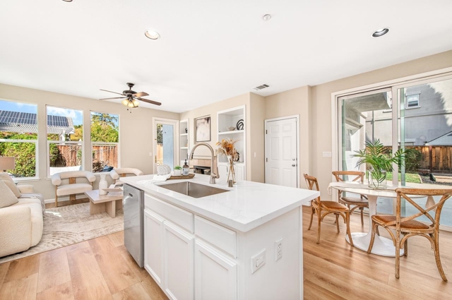 Welcome to Livermore! This beautifully updated 4-bedroom, 2.5-bath home is located in the highly desirable Danbury Neighborhood of North Livermore. This turn-key two-story residence features a light-filled interior with neutral tones, soaring ceilings, and recessed lighting throughout. Fresh interior and exterior paint and brand-new flooring enhance the home’s modern appeal from top to bottom. The bright, contemporary kitchen showcases crisp white cabinetry, new stone countertops, stainless steel appliances, bar seating, a cozy dining nook, and built-in cabinetry for added storage. Upstairs, all bedrooms provide comfort and privacy, including a spacious primary suite with a large soaking tub, walk-in closet, and plush carpeting. Carpeted stairs add warmth and charm. SYA!! The expansive side yard offers plenty of space for gardening, while the large backyard lawn is perfect for outdoor entertaining and play. Ideally situated near parks, top-rated schools, and convenient commuter routes, this move-in-ready home is a must-see!