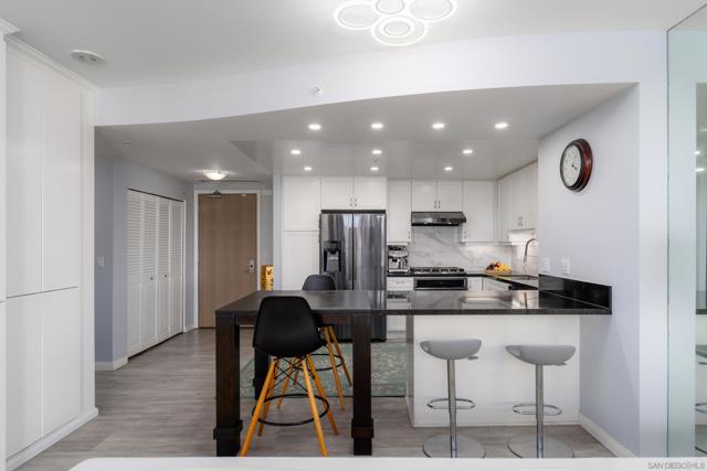 Situated within the sought-after Horizons North Tower in the heart of the Marina District, this luminous south-facing residence is bathed in natural light and framed by expansive open-sky views with minimal obstructions. Thoughtfully updated throughout, the home showcases new flooring alongside a beautifully refreshed kitchen and baths. The reimagined kitchen features a relocated peninsula that enhances flow and functionality, complemented by upgraded finishes and generous storage. An impressive 250-square-foot entertaining terrace extends the living space outdoors, ideal for morning coffee, sunset dining, or hosting guests. Residents enjoy a full suite of resort-style amenities, including a pool and spa, fitness center, and 24/7 security services, billiard and conference rooms, and guest parking. Just steps from the scenic Martin Luther King Jr. Promenade and Seaport Village, the location offers effortless access to waterfront walking paths, premier dining, boutique shopping, and a 24-hour Ralphs Market. Located in Horizons, in the heart of the Marina District, this bright south-facing unit is filled with abundant natural light and offers open-sky views with minimal obstructions. Beautifully updated, it features new flooring along with a modern kitchen and baths. The kitchen remodel included relocating the island to create a more open-concept layout, complemented by upgraded finishes and ample storage. Step outside to an expansive 250 sq. ft. entertaining deck, ideal for relaxing, dining, or hosting friends. Resort-style amenities include a pool, spa, fitness center, concierge, security, billiard and conference rooms, and guest parking. Just steps from the scenic Martin Luther King Jr. Promenade and Seaport Village, with an array of retailers at your doorstep and walking distance to top-rated restaurants, shopping, and a 24-hour Ralphs Market.