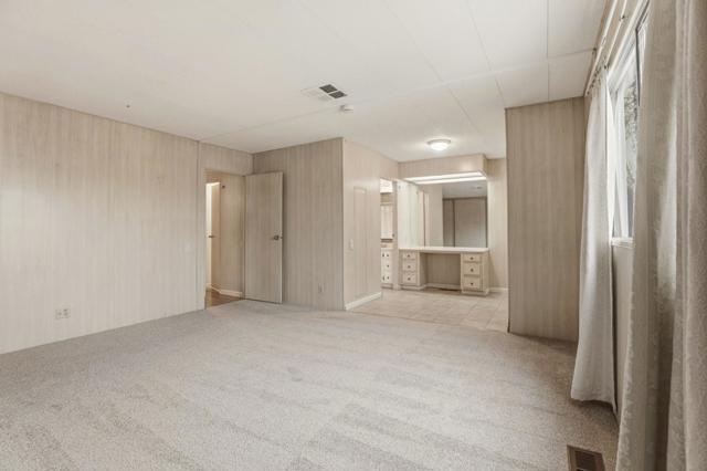 Welcome home to comfort, space, and affordability in Gilroy. This well-maintained 2 bedroom, 2 bathroom manufactured home offers 1,440 sq ft of thoughtfully designed living space on a large lot, perfect for relaxing and entertaining. Inside, enjoy spacious living areas, brand-new carpet in both bedrooms, and large closets. A dedicated laundry room adds convenience, while the double carport and storage shed provide extra space. Outside, new trex deck exterior stairs enhance safety and curb appeal. The generous lot includes patio space and abundant fruit trees, a rare find at this price in Santa Clara County. Just steps from the community pool, the home offers peaceful living with views of the west side hills. Easy access to Highway 101, walking trails, shops, Gilroy Premium Outlets, and local restaurants make commuting and errands simple. A rare opportunity for affordable homeownership.