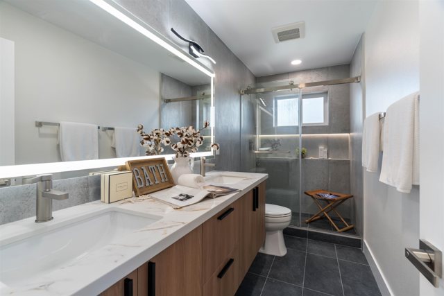 Welcome to this stunningly remodeled home nestled in a quiet neighborhood. The home offers a total of 5 bedrooms and 3.5 bathrooms, including 2 beds, 1.5 baths downstairs, and 3 beds and 2 baths upstairs, providing a functional and private layout. The bright, open-concept design features wide-plank flooring, recessed lighting, and a sun-filled dining area with large sliding glass doors that create seamless indoor–outdoor living. The new gourmet kitchen showcases a luxury design with a center island, gas stove, new cabinetry, sink, and modern appliances—perfectly suited for both everyday living and entertaining. Each bedroom serves as a peaceful retreat filled with natural light and serene views, while the beautifully updated bathrooms highlight modern finishes and thoughtful craftsmanship. A backyard storage room has been converted into a gym, offering flexible space for fitness, a home office, or creative use. Step outside to your private backyard lush lawn which ideal for relaxing or hosting gatherings. Low-maintenance front and backyard landscaping adds to the home’s convenience and appeal. This exceptional property blends comfort, space, and modern upgrades in a highly desirable setting. Don’t miss the opportunity to make this gorgeous home your own!