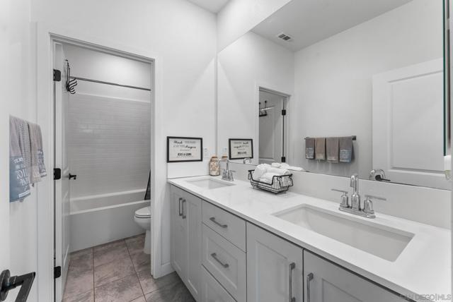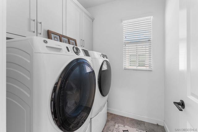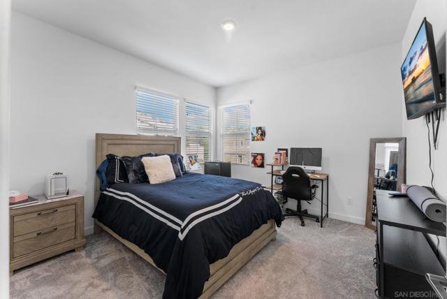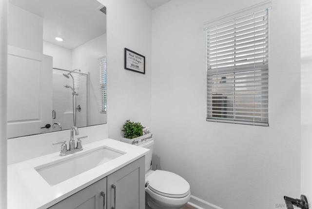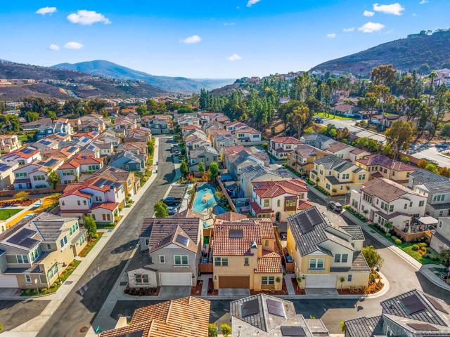 Step inside this 4-bed/3-bath, 1,950 sqft Spanish-styled open-concept home in the community of Aventine in the eastern part of Spring Valley, built in 2021. Let the natural light welcome you into the airy ambiance provided by the 10 ft tall ceilings and abundant windows in a great room, centering the living space of the home for comfortable living. Surround sound built-in speakers, recessed lighting, and hard surface flooring enhance your enjoyment of gatherings for entertaining. The kitchen features light gray shaker cabinets, including a pantry cabinet, slab quartz counters, tiled backsplash, stainless steel appliances, including a fridge and gas stove, and a large 4-person island with pendant lighting. The dining area can fit a full-sized dining set, perfect for gathering around the table to enjoy indoor/outdoor living. French slider doors that are almost the full size of the wall lead to the outdoor space. The low-maintenance backyard includes a concrete patio, turf, and a small rose garden. One bedroom and a full bath on the 1st floor make a perfect space for a guest bedroom or office. The 2nd level features a primary bedroom retreat with large windows and tall ceilings that lead to the ensuite bath with a separate shower, soaking tub, dual vanity, and walk-in closet. Additionally, upstairs there are 2 bedrooms, a hallway bathroom with a dual sink vanity and shower/tub combo, an upstairs laundry room, and a small loft space providing a flex area for a workstation or additional storage. The great location within the complex places the home backing to the play area with with no home directly behind. The 2-car direct access garage opens into the kitchen area and includes a MyQ Chamberlain smart garage hub, central heat & A/C, Honeywell Pro smart thermostat, Flo by Moen smart water detector, and a Ring Video doorbell with a 2-outdoor camera security system. Smart home features include the Eero Pro 6 smart home hub providing convenience while enjoying your home. The solar lease is approximately $123/month. The HOA includes a playground and open space area with ping pong tables, and neighbor events such as BBQs, with an HOA fee of $180/month. Located off of Sweetwater Springs Blvd, just south of the 94, next to Monte Vista High, Sweetwater Springs Elementary, Valley de Oro Little League fields, and outdoor recreational areas like Sweetwater Summit Regional Park. & Dictionary Hill County Preserve. Easy commute to Downtown SD, 32nd St Naval base, local beaches & SD Bay.