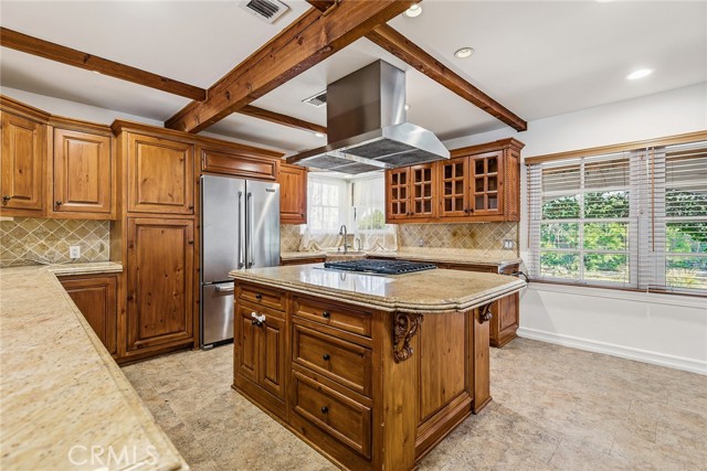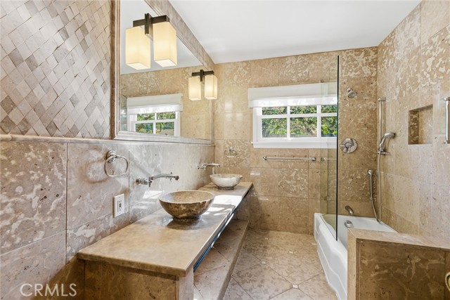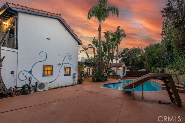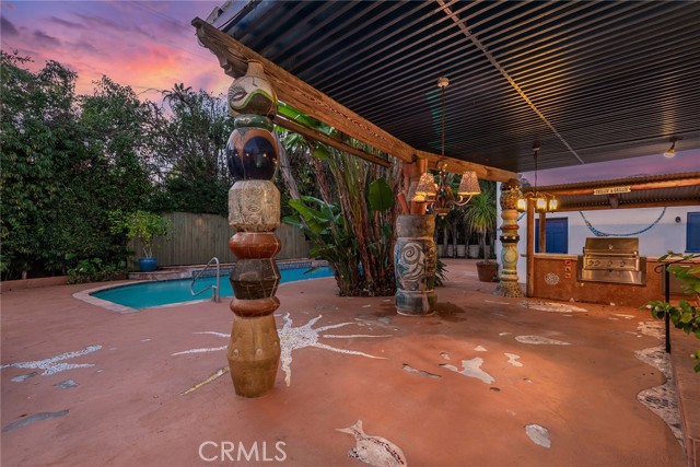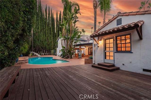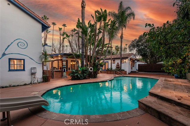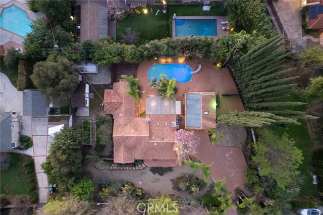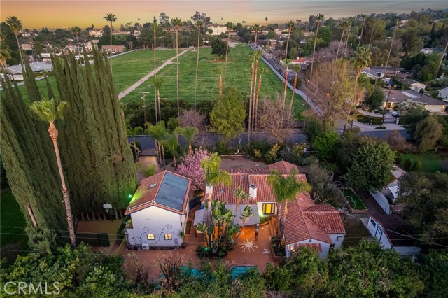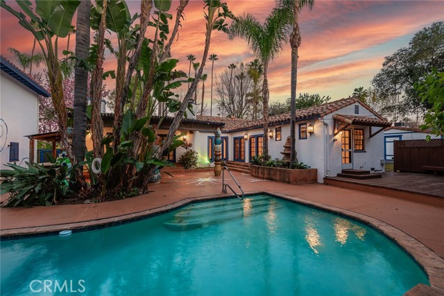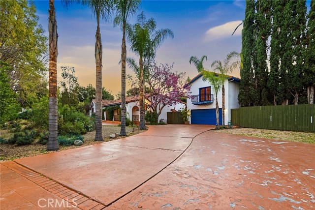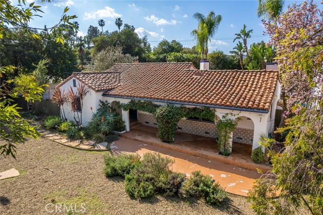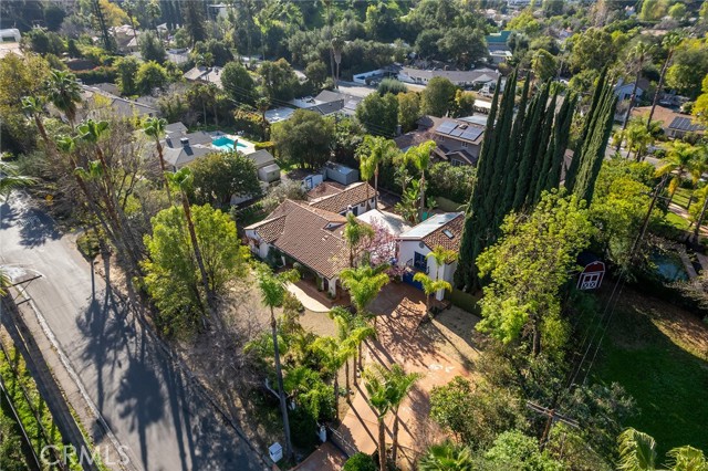 Privately gated and ideally situated south of Ventura Boulevard in Woodland Hills, this special compound presents a rare opportunity to own a single-story Spanish residence on an expansive 20,958 SQFT flat lot in one of the valley’s most sought after neighborhoods. Offering privacy, scale, and versatility, this charming home blends everyday comfort with meaningful long term potential - whether to enjoy as-is, fully renovate and expand, or build your dream estate. The interior unfolds with warmth and character, shaped by thoughtful details that give the home its unique personality. The main residence features 3 bedrooms and 2 bathrooms, hardwood flooring, smooth ceilings, recessed lighting, and is thoughtfully laid out for both entertaining and effortless daily living. A wood beamed ceiling in the family room and a chef’s kitchen with granite countertops plus large center island, anchors the heart of the home, complemented by updated bathrooms, newer interior paint, and a cozy fireplace. The spacious primary suite features a walk-in closet and a full en-suite bathroom with a spa tub and separate shower. Abundant natural light fills the home throughout the day, creating a comfortable and welcoming environment with a seamless connection of indoor/outdoor living space. Outdoors, the resort-like grounds truly set this property apart. Handcrafted details such as custom painted columns and mosaic wall accents quietly elevate the exterior spaces with charm and personality. The sprawling lot is highlighted by a sparkling pool, covered patio with BBQ bar, basketball court, mature gardens, planters, and multiple storage sheds - offering endless possibilities for leisure, entertaining, or future expansion. A long private electric gated driveway provides parking for multiple vehicles, adding both convenience and privacy. The estate also includes a detached two-car garage with a private upstairs recreation room and bathroom ideal for a potential ADU, home office, guest suite, or creative studio - an increasingly rare and valuable feature in today’s market. Quietly tucked away yet moments from premier dining, shopping, cafés, Topanga Village, Warner Center, local parks, and the new LA Rams practice facility, with easy access to freeways and the beach via canyon roads, this is a truly distinctive offering.