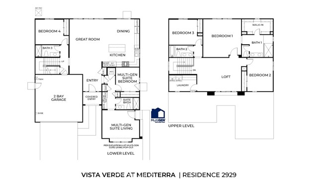 NEW CONSTRUCTION - SINGLE-FAMILY HOMES - Enjoy the good life at Vista Verde at Mediterra in Highland. This community is nestled against the base of the foothills and features a beautiful pool and park, and offers expertly-crafted one and two-story residences ranging from 2,319 sq. ft. to 3,172 sq. ft. This 5 bedroom + Loft + 4 bath (includes Multi-Gen Suite) 2,929 square foot MULTIGEN X home HAS IT ALL – welcoming covered porch and beautiful entry, a main-level bedroom and full bath PLUS a main-level MultiGEN bedroom and bath, open, expansive Great Room, Kitchen and Dining Space designed for gathering and entertaining. The Gourmet Kitchens include Quartz countertops, 36” Stainless Steel Commercial Style Gas Range w/6 burners, Built-In Micro/Oven combo, and White Apron-Front Undermount Single Basin Kitchen Sink. The expansive Primary Suite feels like a retreat and the Primary Bathroom features an Oversized Large Walk-in Shower with Daltile in the Master Bath. The MultiGEN Suite features a Living Room and Kitchenette with compact Refrigerator & Microwave. Other amazing features include Smart Home Technology with home automation features at your fingertips.
