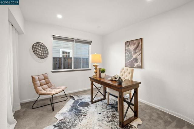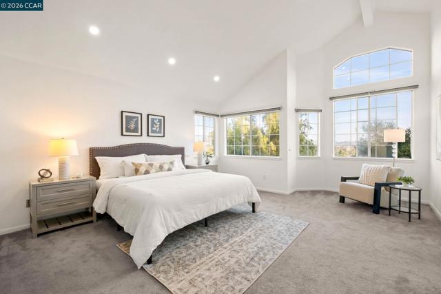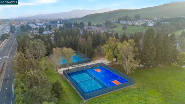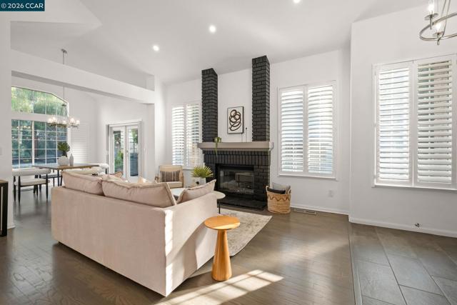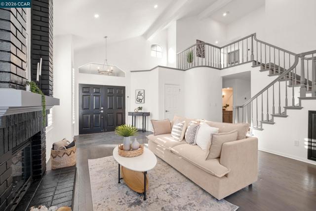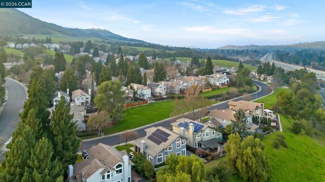 Finding a west-facing Danville home with flexible living space, high ceilings, scenic views, and community amenities is rare — this one delivers. Located in the CA Château at Danville Ranch, this updated single-family home is minutes from top-rated schools, charming downtown Danville, City Center San Ramon, Iron Horse Trail, steps to trails and greenbelts, and commuter routes. The floor plan includes a full bedroom and bathroom on the main level, ideal for guests, multi-generational living, or a private office. Upstairs are three additional bedrooms, including a spacious primary suite. The renovated kitchen features quartz countertops, premium KitchenAid appliances, and a gas range, opening to vaulted living and dining spaces with great flow for everyday living and entertaining. From the backyard and primary suite, enjoy views of rolling hills with a peek of Mt. Diablo. The backyard includes pavers, retaining wall, fencing with dual access gates, and automated sprinkler and drip systems. Additional improvements include interior and exterior paint, recessed lighting and updated fixtures, refinished hardwood floors, refreshed carpet, dual-zone A/C and heat pump, Level 2 EV outlet, and owned solar. Community pool, clubhouse, and tennis courts — don’t miss this opportunity.