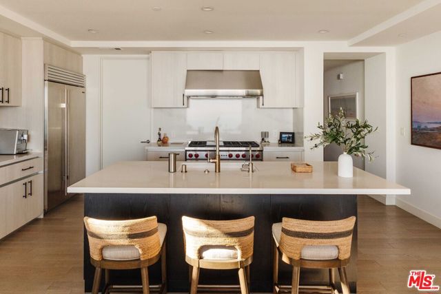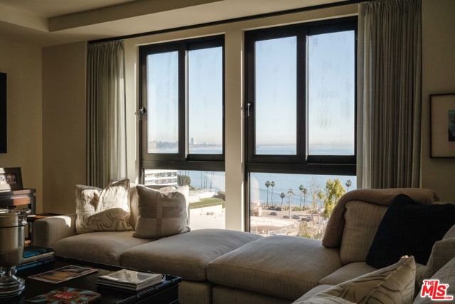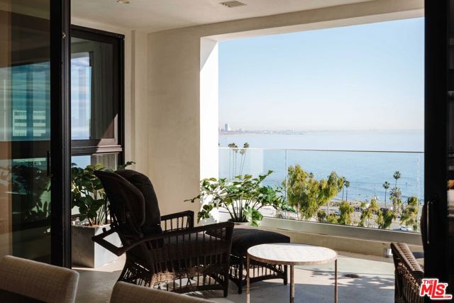 Perched on the bluffs above PCH and Sunset Boulevard, this designer-done residence offers some of the most commanding ocean and coastline views on the Westside. The entry opens into a seamless, light-filled main floor plan where the living and dining areas transition effortlessly into a bespoke chef's kitchen. Further customized by the current owners, the kitchen features Wolf and Sub-Zero appliances, a center island, and upgraded cabinetry, countertops, and water filtration. The main level is framed by explosive views of the Queen's Necklace and Catalina Island, best enjoyed from the private balcony. Upstairs, the primary retreat is a masterclass in luxury, featuring a private sitting/office area and a spa-like bath with a view-oriented soaking tub, oversized shower with bench, Waterworks fixtures, and triple vanities. A sumptuous walk-in closet by California Closets completes the suite. Two additional guest suites feature en-suite baths and custom closets. Refined interior details include hardwood flooring, grasscloth wallcoverings, custom window treatments, and a bar with wine storage. Exclusive to only a select few residences at OneCoast, the home includes an expansive private rooftop deck and an attached two-car garage with built-in storage. Residents enjoy 24-hour, guard-gated security, a location just a block from the beach, and a 5-minute drive to Palisades Village, Malibu, and Santa Monica.
