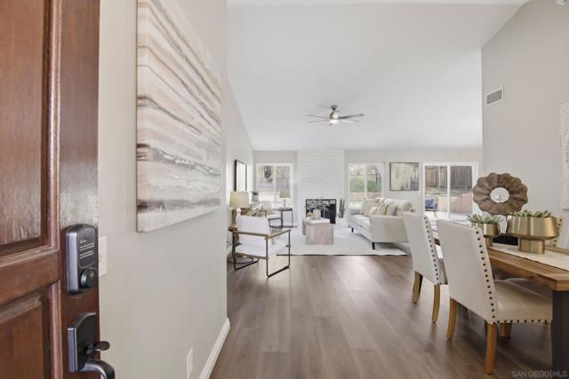 Welcome to this beautifully upgraded, single-level turnkey 3-bedroom, 2-bath home offering soaring ceilings, a modern feel, and a warm, inviting fireplace that enhances the open living space. Solar energy overproduction significantly reduces energy costs while supporting efficient and comfortable living. Thoughtfully updated throughout, the home features brand-new luxury vinyl plank flooring, a sleek kitchen with quartz countertops and stainless-steel appliances, a new roof, a newer HVAC system, and refreshed bathrooms. The expansive, private backyard offers endless potential, ready to be customized to fit any outdoor lifestyle. Perfect for entertaining family and friends, it includes an outdoor pull-up bar fitness station and ample space for gatherings under the stars. Ideally located just minutes from Lake Jennings for fishing, boating, and scenic hiking, with nearby casinos, dining, and convenient access to Highway 8. This home delivers the perfect blend of modern upgrades, comfort, and adventure. Your Lakeside lifestyle starts here. Solar installed/34 panels(2020), Upgraded kitchen with stainless appliances (2025)Brand new LVP floors (2023), Large backyard with outdoor Pull Up bar exercise station. New Roof (2023), Newer dual-pane windows (2021), Newer HVAC (2024)Newer water heater (2019), New painted vanity and kitchen cabinet doors (2026), Upgraded fireplace with new screen (2026), Upgraded counters tops kitchen and bathrooms (2024), Updated bathrooms with new fixtures (2024)Entire interior painted (2024). Upgraded landscaping with new grass 2026