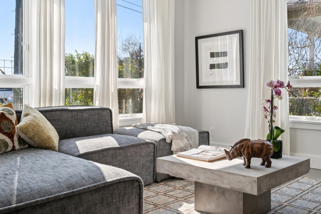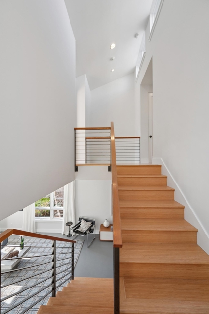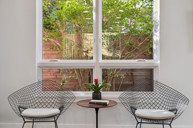 Stunning modern masterpiece set among lush gardens—a true urban oasis! Designed by award-winning architects Siegel & Strain, this 2008 custom home features innovative design and high-quality eco-friendly finishes. A dramatic foyer opens to soaring 9' ceilings and a custom reclaimed fir–clad central core. Light-filled interiors showcase a sculptural open staircase, vaulted ceilings, and clerestory windows. The open main level offers seamless indoor-outdoor living with garden views and direct access from the kitchen and dining area to the private rear garden. Upstairs, two spacious en-suite bedrooms are separated by a bridge, each opening to charming decks. The primary suite features vaulted ceilings, garden views, private deck, wall-to-wall closets, and a spacious bath. Radiant floor heating, dual-paned wood/clad windows, off-street parking. Walk Score 89, Bike Score 84. Close to Emeryville Greenway, Berkeley Bowl West, Bay Street, dining, I-80, BART & Amtrak shuttles. Open Sat/Sun 2–4 PM.