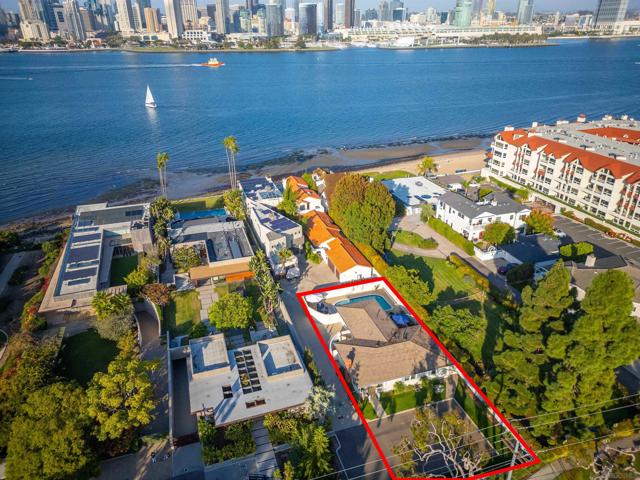 Don't let this one slip away! Discover an exceptional opportunity to create your dream home on this impressive 6,494 sq ft lot, perfectly positioned on the highly sought-after 1st Street in Coronado. This prime piece of real estate offers a beautifully remodeled single level home with the potential to build upwards, providing Breathtaking Views of the Bay & dazzling city lights of the iconic San Diego downtown skyline. Nestled on the Bay side of 1st Street, this RARE find boasts deeded frontage on a quiet street. The current home was recently remodeled with beautiful finishes featuring 2BR 2 BA & perfectly laid out living spaces. The property accommodates 4-6 additional private parking spaces in the front. You might consider enhancing the front area with turf for an ideal vantage point of the renowned "4th of July parade," or explore the possibility of access to a brand-new garage. Located in a vibrant bayside area, this spot offers proximity to dining, cozy coffee shops, grocery stores, and charming boutiques all within a block. The existing single level home has been beautifully updated with quality finishes and enhancements, featuring all new kitchen and baths, gorgeous designer tiles and countertops, newer appliances, oak wood flooring, upgraded dual-pane windows throughout, and central air conditioning plus pool and mud room. Ready for immediate occupancy or to enjoy while planning future renovations. This is a remarkable chance not to be missed—bring your offer today!