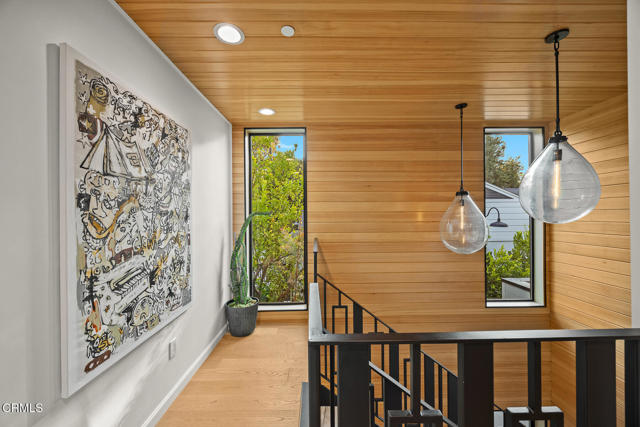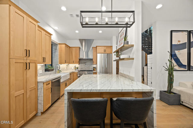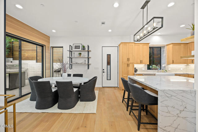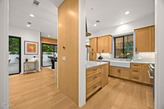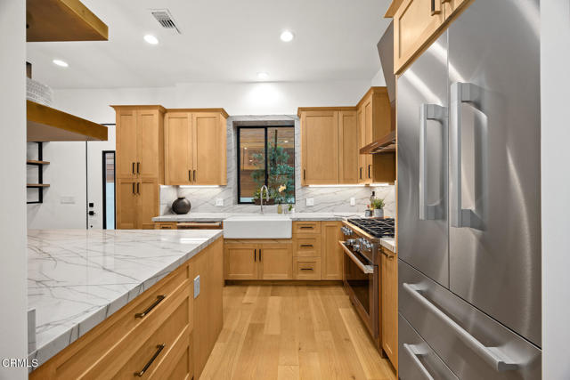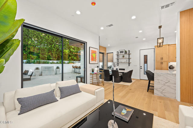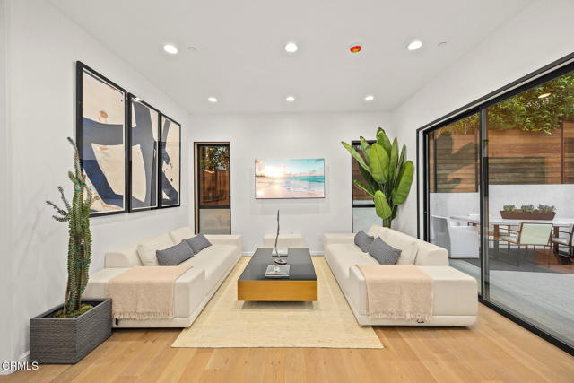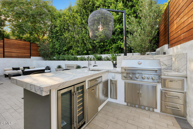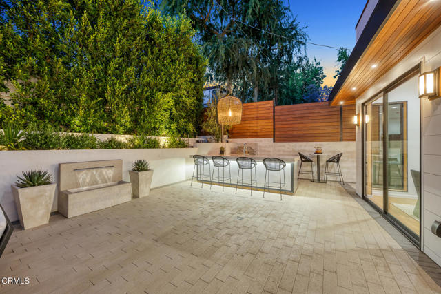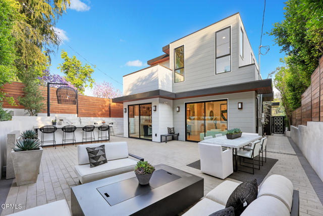 Introducing an exceptional, newly built 2025 residence in the heart of Studio City--where luxury design meets high-performance living. Crafted with sustainable, climate-resilient materials and advanced smart home technology, this property embodies refined elegance and cutting-edge efficiency.Inside, the home showcases soaring 10-foot ceilings with shiplap wood detailing, creating an expansive feel. A handcrafted staircase stands as a central showpiece, blending natural stone, custom metal railings, and exotic wood finishes. Architectural tall metal-framed windows invite abundant natural light, offering stunning views of Studio City and the Hollywood Hills.Two private decks, accessible from en suite bedrooms, provide seamless indoor-outdoor living. A third oversized entertainment deck above the garage is perfect for hosting gatherings and enjoying city views.The outdoor space is designed for luxury entertaining, featuring a custom outdoor kitchen with a handmade Italian Antolini quartzite island, chandelier, built-in BBQ, sink, wine refrigerator, storage, spice rack, and wall-mounted TV. A designer RH water feature, Lumacast all-season fire table, and meticulously laid pavers blend seamlessly with drought-resistant landscaping. Custom irrigation and Volt lighting provide a resort-style atmosphere.The home is powered by an efficient solar energy system, reducing power costs and promoting self-sufficiency. Built with climate-resistant materials, this residence offers long-term durability and sustainability.Inside, you'll find custom Restoration Hardware lighting fixtures, French oak wide plank flooring, and natural stone surfaces like Carrara limestone and Thasos. The gourmet kitchen includes Miele appliances, a custom stainless hood, Shaws fire clay sink, quartzite island, Alder cabinetry, and a marble bay window. Laundry rooms on both levels are equipped with Miele washer and dryer sets.Three full bathrooms feature floor-to-ceiling marble and natural stone, with luxurious Restoration Hardware fixtures and lighting. Tailor-made walk-in closets provide generous storage in every suite.The exterior boasts handcrafted iron security gates and fencing with Brazilian mahogany inlays, smooth stucco walls, and striking metal overhangs.More than a home, it's a visionary expression of sustainability, craftsmanship, and design in one of Los Angeles' most desirable neighborhoods. This home is available with ALL Modern Luxury furnishings.