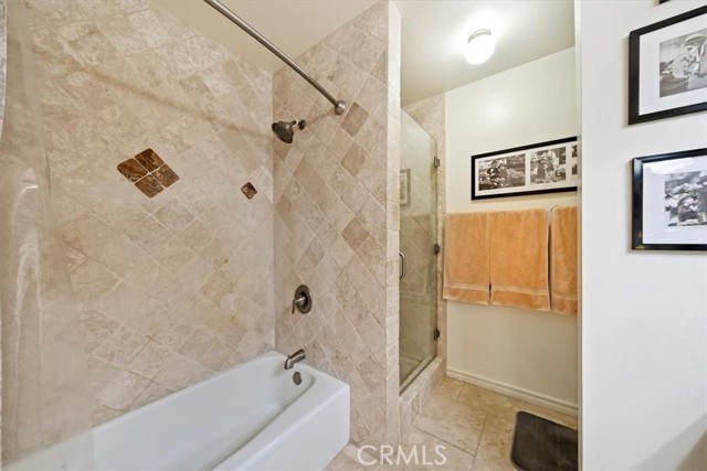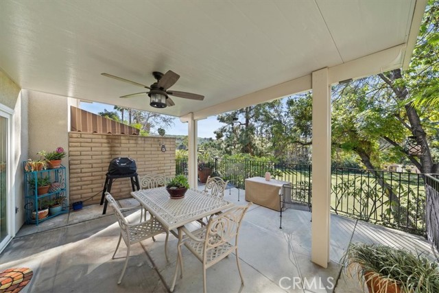 Nestled in the desirable Canyon Crest neighborhood, the Las Mesas Condominiums offers timeless charm with thoughtful modern updates, and this beautifully maintained unit truly stands out. From the moment you enter, pride of ownership is evident. The open and inviting floor plan draws your eye through to serene views of the 6th fairway of Canyon Crest Golf Course. The picturesque outlook creates a peaceful setting and enhances the spacious patio, perfect for relaxing or entertaining. Las Mesas has undergone extensive community-wide improvements, including updated plumbing, recently refreshed exterior paint, and meticulously maintained landscaping that creates a welcoming, resort-like atmosphere. HOA dues conveniently include water, trash, sewer, and landscaping. Inside, numerous upgrades add comfort, efficiency, and style. The kitchen features granite countertops, stainless steel appliances, upgraded cabinetry, and travertine flooring throughout the main living areas. Additional enhancements include dual-pane windows, attic insulation, insulated shared walls for sound reduction, a newer HVAC system, an updated patio cover, and a new front entry door with security screen. Both bathrooms have been tastefully remodeled with granite countertops. The upstairs bath offers a beautifully travertine-tiled walk-in shower and flooring, plus an additional shower head above the tub with matching travertine surround. The primary bedroom includes a remodeled closet for improved storage and functionality. The property also offers two covered parking spaces and a private storage area, adding valuable convenience. Combining classic community charm, extensive modern upgrades, and a premium golf course view, this home offers comfort, style, and an exceptional lifestyle. Come see it for yourself.