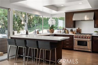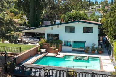 Nestled in the picturesque hills of Tarzana in the Santa Monica mountains, this stunning three bedroom, three bath home offers a perfect blend of elegance and comfort. As you step through the double doors, you’re greeted by a warm and inviting atmosphere that immediately feels like home. The expansive living room features a cozy fireplace and soaring vaulted ceilings, creating an open and airy space perfect for relaxation and entertaining. The heart of this home is the chef's gourmet kitchen, complete with brand-new quartz countertops, custom floating shelves, a breakfast bar, and top-of-the-line stainless steel appliances, including a Wolf oven and range. The kitchen's functionality is matched by its beauty, with three ovens providing ample cooking space for any culinary enthusiast. Throughout the home, gorgeous French oak wide plank floors add a touch of sophistication. Adjacent to the kitchen is a charming dining room, framed by picture windows that offer stunning views of the beautifully landscaped yard and beyond. Downstairs, an inviting family room with a bar creates a perfect spot for casual gatherings, while a recently remodeled bathroom adds convenience and style. Upstairs, the primary suite is a true retreat, featuring vaulted ceilings, a private balcony, and ample space to unwind. The secondary bedrooms are equally impressive, each offering incredible views that capture the beauty of the surrounding area and overlook the waterhole on the newly renovated Braemar Golf Course. The outdoor space is nothing short of spectacular, with a park-like yard that includes a lush grassy area, a sparkling pool, a relaxing Jacuzzi, breathtaking views, and the twinkling lights of the valley below. This home is a sanctuary of comfort and luxury, offering an unparalleled living experience in one of Tarzana’s most sought-after locations.