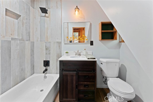 Exceptional remodeled cabin with a finished basement: Primary residence features 2 bathrooms, 1 bedroom, and stunning vistas with a spacious deck. The basement boasts 1 bedroom and 1 bathroom, making this property a must-see. Ideally situated for outdoor enthusiasts, this charming forest retreat in Crestline is mere minutes from the lake, hiking trails, and prime fishing spots. Perfect for a serene weekend getaway, this beautifully remodeled cabin seamlessly blends rustic charm with modern comforts, courtesy of thoughtful updates and detailed accents throughout. DO NOT DISTURB OCCUPANT please submit pre approval and proof of funds when requesting private showing. Short sale has been approved