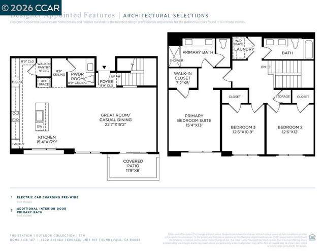 Discover luxury living in the heart of Silicon Valley. New Condos in Sunnyvale, Outlook at The Station features a sought-after location that puts you close to every want and convenience. This 3TH two-story poplar home design. Upgraded contemporary metal stair rail. An impressive kitchen with Energy Star KitchenAid stainless steel appliances, shaker style modern cabinets, quartz countertops with designer tile backsplash, sizable pantry, and a large center island. Direct access to a covered patio from the great room allows endless outdoor relaxation. Upstairs, primary bedroom boasts a private covered balcony, an expansive walk-in closet, primary bath with dual-sink vanity and large shower. Spacious secondary bedrooms, one with a covered balcony. Second-level laundry with Whirlpool front load washer and dryer. Convenient reserved 2-car space with a pre-wire plug for electric car charging. Resort-style amenities include pool, indoor/outdoor lounge area, fireplace, dog wash, dog park, co-work mezzanine, entertainment lounge, fitness center, courtyard, playground, walking paths and expansive lawns. Vantage At The Station is located near Santana Row, Valley Fair Mall, Shopping Centers. Close to VTA Light Rail, Lawrence Caltrain and Bart. (photos not of actual home)