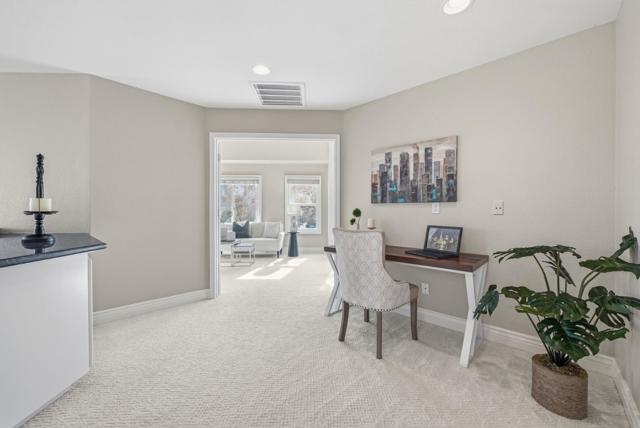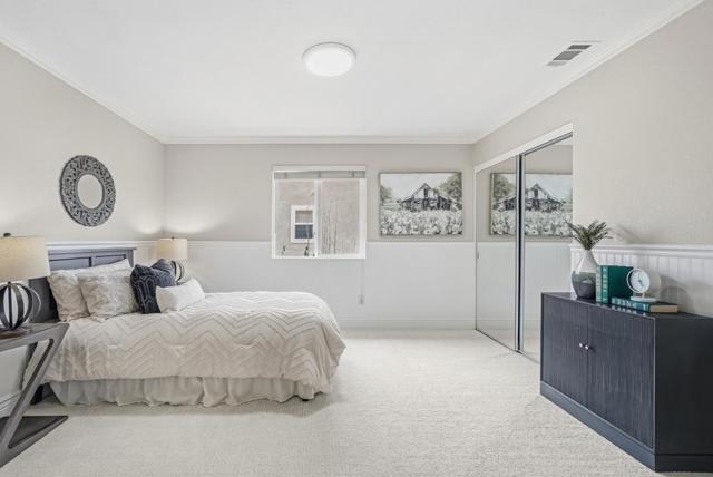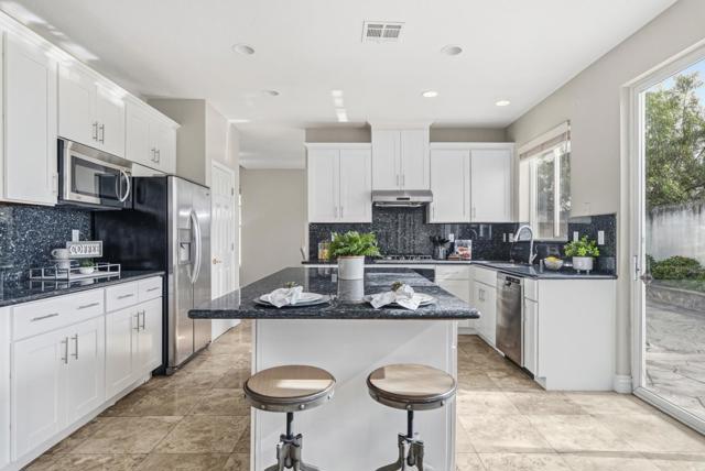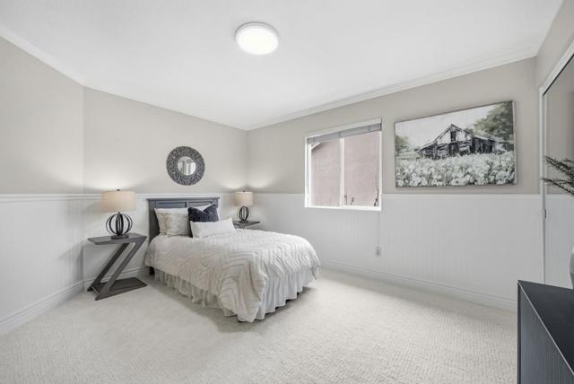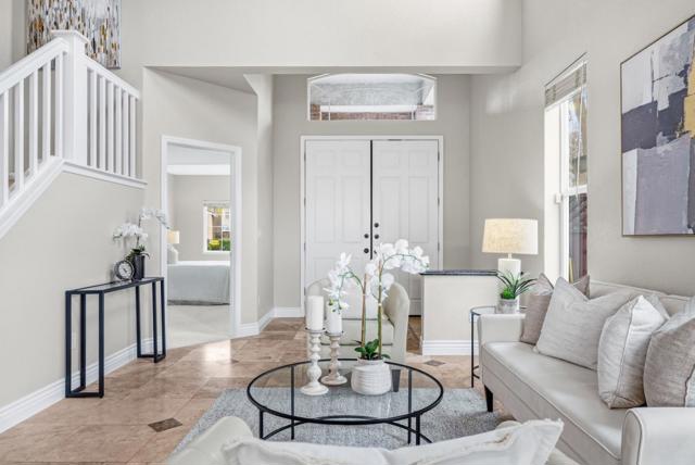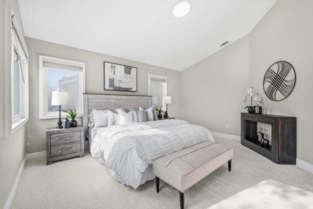 Welcome to the N.W. facing, gorgeous single family house located on a private cul-de-sac in the highly sought after Creekside community! The house has 4 bedrooms, 3 bathrooms, 2 car garage and 2589 sqft living with a bedroom and a full bathroom downstairs. Ideal floor plan offers an inviting living & formal dining, gourmet kitchen, extended family room and spacious bedrooms. Vaulted ceiling and large windows allow the light to pour in! Updated kitchen with newly painted cabinets, pantry, granite countertop, gas stove PLUS large center island. The kitchen's island & breakfast nook provide additional space for casual dining and meal prep. Upper loft area overlooks living/dining area with cabinets. Huge master bedroom with vaulted ceiling, upgraded bathroom with dual sinks & walk in closets. Fresh interior paint and brand new carpet for a crisp, modern look inside and out! Minutes to the movie theater, the WAVE at Emerald Glen park, Whole Foods, shops, restaurants, Tassajara Creek trail, top-rated schools K-12 including brand new Emerald High school, BART and NO HOA.