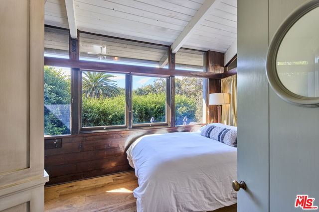 Where Malibu's coastal character meets surf-inspired architecture, welcome to "The Octagon," a distinctive post-and-beam residence crafted by water lovers and designed to honor light, air, and a true connection to the sea. Wrapped in windows and filled with authentic old-school Malibu charm, this one-of-a-kind home reflects the spirit of a bygone era with an architectural edge. Featuring 4 bedrooms, 3 bathrooms, and versatile lofts, the floor plan offers exceptional flexibility for living, working, hosting, or creative use. The thoughtfully redesigned kitchen features Calcutta marble surfaces, brass accents, and custom craftsmanship, creating a beautifully functional centerpiece.The main living area is anchored by a welcoming fireplace, and floor-to-ceiling doors provide a seamless indooroutdoor flow, perfect for entertaining or expanding your daily living space. The primary suite includes a steam shower for a spa-like retreat, while subtle peek-a-boo ocean views enhance the home's coastal ambiance. A separate converted bonus suite with its own bathroom and kitchenette area adds valuable flexibility for guests or extended living. Multiple deck areas surround the home, offering opportunities to enjoy the outdoors from different vantage points, complemented by an outdoor shower ideal for beachside living. The property also includes a fully owned solar system, supported by two Tesla backup batteries and a Tesla charging station, providing energy efficiency and self-powered reliability. Located within a private seaside gated enclave of approximately twelve homes, the residence sits along a picturesque tree-lined lane that leads directly to Lechuza Beach, one of Malibu's most cherished hideaways. The community benefits from a seasonal private security patrol schedule, offering added peace of mind. Just minutes from the retail, dining, and conveniences of Trancas Country Market, as well as the newly constructed Malibu High School and Malibu Middle School, this home presents a rare opportunity to live by the sea in one of Malibu's most intimate and authentic enclaves.