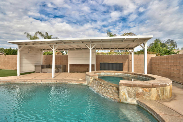 Stunning fully remodeled 4 bed / 4 bath home -- 2,061 sq ft of turnkey living on a large 9,148 sq ft lot. Ideal for entertaining, the private backyard features a sparkling pool, relaxing spa, and built-in BBQ set around a generous patio. Move-in ready and offered furnished, this home blends modern finishes with effortless comfort.Bright, open floor plan with well-appointed bedrooms and four contemporary bathrooms. Recent upgrades include new flooring, updated kitchen and baths, lighting, and systems -- everything completed to move right in. Low HOA for easy ownership.South-facing front door enhances natural light. Prime location just off Avenue 48 and Madison Street -- close to shopping, dining, schools, golf courses, and festival venues. A rare combination of turnkey convenience, outdoor lifestyle, and central accessibility.