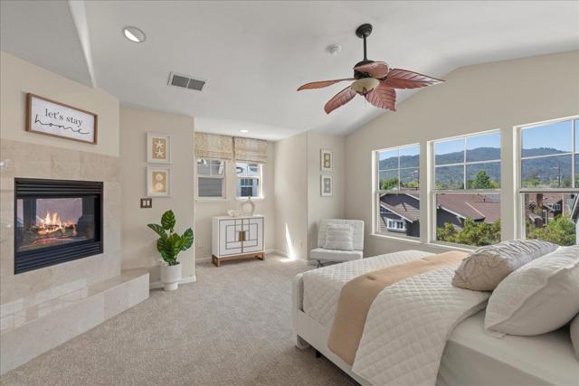 Welcome to Bella Vista Village, a beautiful enclave of 47 single family, attached homes in the heart of Los Gatos ideally located within walking distance of award-winning LOS GATOS SCHOOLS, downtown boutiques, fine dining and sidewalk cafes. You'll discover a spacious and thoughtfully UPDATED INTERIOR with 9-foot ceilings and hardwood floors on the main floor and vaulted ceilings in the Primary Suite on the upper floor with stunning views of the mountains and a gas log fireplace, walk-in closet and marble bath. The kitchen with granite counters and convenient breakfast bar is adjacent to the family room with a 2-way fireplace shared with the living room and adjacent dining room. French doors in the family room open onto a private deck backing to a landscaped hill. A two-car garage with new epoxy flooring & 2 dedicated storage areas provide added convenience. Enjoy easy access to the BEST OF LOS GATOS LIVING with summer concerts at Music in the Park & Jazz On the Plaz, downtown parades, wine walks, Vasona Lake, Lexington Reservoir, & the scenic Los Gatos Creek Trail for hiking & biking. You'll also appreciate quick freeway access to Santa Cruz beaches & Silicon Valley tech centers. Don't miss the beautiful COMMUNITY POOL offering a refreshing retreat just steps from your door.