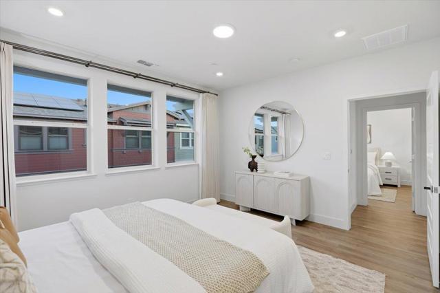 Welcome to this beautiful, better-than-new condo located in the highly sought-after Lavender community in Sunnyvale. This light-filled unit offers a functional floor plan with comfortable living spaces, ideal for both owner-occupants and investors. The home features an inviting living area with large windows that provide an open view of the community center and abundant natural light flowing seamlessly into the open dining space and kitchen spaces. The kitchen offers ample cabinetry and counter space, making everyday cooking and entertaining convenient. The bedrooms are generously sized with good closet space, while each bedroom is equipped with a private bathroom and thoughtfully laid out for comfort and functionality. Additional highlights include the owned solar system, offering meaningful utility savings and potential PG&E credits, along with central forced air conditioning for enhanced comfort and efficiency, in-unit laundry, a cozy private balcony, and a roomy side-by-side 2 car garage. Located in a beautifully maintained community with a private park, clubhouse, BBQ area, and ample guest parking, just minutes from major tech companies like Apple, Google, LinkedIn, and Nvidia, downtown Sunnyvale, Caltrain, shopping, dining, parks, and easy access to major commute routes.