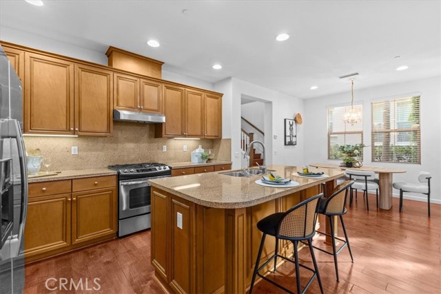 This beautiful property is located in the highly sought after Woodbury community. This end unit floorplan rarely comes on the market. It is the largest model for a two story in this Esplanade Development. It features an open floor plan with a Great Room, Kitchen, Dining area and a tech space. Kitchen is equipped with stainless steel appliances, center island, granite countertop and ample cabinet space. Downstairs also comes with a spacious bedroom and a full bathroom. Upstairs features a good size Primary Bedroom with walk in closet, en-suite Bathroom with dual sinks, separate shower and tub. Down the hall has a loft area that can be used as an office or a retreat space. Another generous sized Secondary Bedroom is at the end of the hall with its own private Bathroom. Upgrades for this house includes recessed lighting, new paint and wood flooring throughout. Conveniently located in Irvine, this home is walking distance to amenities, Woodbury Shopping Center and The Great Park. Award-winning Irvine Unified Schools, including Woodbury Elementary, Jeffrey Trail Middle School, Portola High School and Irvine Montessori Schools, just a short distance away. This home offers the perfect blend of luxury, comfort, and convenience.