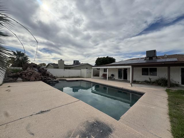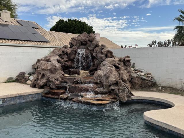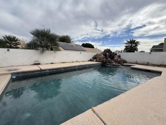 Updated 3-bedroom, 2-bath home offering approx. 1,648 sq ft of comfortable living space. Bright, open layout with a refreshed kitchen featuring white cabinetry, ample counter space, and a functional island ideal for everyday living and entertaining. Spacious living area with fireplace adds warmth and character. Generously sized bedrooms offer flexibility and comfort. Private backyard retreat with covered patio and pool, perfect for relaxing or hosting. Located in an established neighborhood. A great opportunity to enjoy desert living.