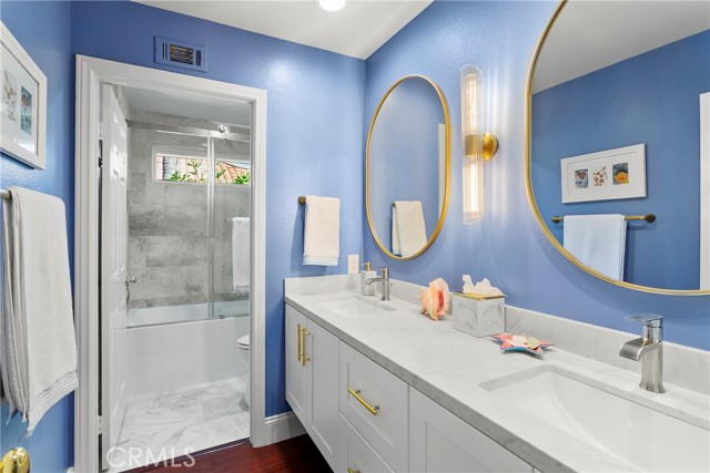 Located in the coveted guard-gated CANYON CREST community of Mission Viejo, this beautifully updated 4bed, 3bath home has 3166 sqft of living space on a 6600 sqft CUL-DE-SAC lot. With CITY LIGHTS AND MOUNTAIN VIEWS, high-end upgrades and finishes, and a flexible layout, there’s so much to love. Inside, you'll find thoughtful updates including HIGH-END PELLA WINDOWS AND FRENCH DOORS, a WHOLE HOUSE DE-SCALER, a TANKLESS WATER HEATER, and a PEX REPIPE. The spacious formal living room features one of TWO COZY FIREPLACES, while a nearby formal dining room connects seamlessly to the updated kitchen. In the kitchen, enjoy a large quartz island, custom pull-out drawers including a pull-out lazy Susan, a pot filler, and top-of-the-line BOSCH, THERMADOR, and SUB-ZERO APPLIANCES. The family room has BUILT-IN CABINETRY, the second fireplace, and direct access to the COVERED PATIO, ideal for indoor-outdoor living. A downstairs bedroom and remodeled three-quarter bath with AMALFI COAST-INSPIRED finishes offer the perfect guest or multigenerational setup. Upstairs, the primary suite features VAULTED CEILINGS, a PRIVATE BALCONY with panoramic views, a WALK-IN CLOSET, and a spa-like bath with a FREESTANDING TUB, walk-in shower with multiple heads, dual vanities, and MARBLE. Two additional upstairs bedrooms share a full hall bath, and a BONUS ROOM, currently used as a billiards/game room, adds even more flexibility. Throughout the home, you’ll find upgraded flooring, LUXURY SHUTTERS, natural light via a SKYLIGHT, and SMART WINDOW SHADES. Outside, enjoy low-maintenance landscaping, a large covered patio, and front-row seats to LAKE MISSION VIEJO 4TH OF JULY FIREWORKS. The 3-CAR GARAGE includes built-in storage and an EV CHARGER. Canyon Crest is a highly desirable Mission Viejo community that feels like a true resort. Residents enjoy access to a private recreation facility featuring multiple swimming pools, including a spa, lap pool, and children’s pool, a fully equipped fitness center, sauna, tennis and pickleball courts, sports courts, playgrounds, BBQ and picnic areas, and a community clubhouse. There’s always something happening. From Easter egg hunts to visits from Santa and even comedy nights! Ideally located minutes from Lake Mission Viejo, homeowners have access to boating, fishing, swimming, lakeside BBQs, summer concerts, outdoor movie nights, and the annual 4th of July fireworks show. Close to shopping, dining, parks, and top-rated schools. Don't miss out!