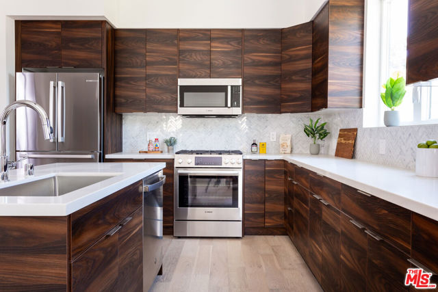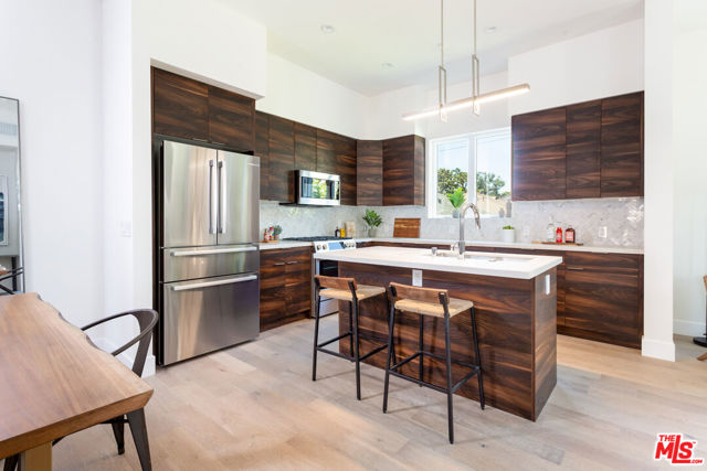 This gorgeous and spacious 3-bedroom, 3-bathroom townhome features hardwood floors throughout, an open-concept living room with adjacent dining area, and a gourmet kitchen complete with quartz countertops, custom cabinetry, breakfast bar, and Bosch stainless steel appliances. The main level includes the primary living spaces along with one bedroom and full bathroom ideal for guests or a home office. Upstairs, the sun-filled second floor offers two generously sized bedrooms, including the primary suite with a custom walk-in closet and a luxurious spa-like en-suite bath featuring dual vanities, a separate shower, and soaking tub. Additional highlights include central HVAC, recessed lighting, in-unit laundry, and an attached two-car garage. Ideally located with coveted Culver City services and close to award-winning restaurants, markets, public transit, and all that Culver City and Silicon Beach have to offer.