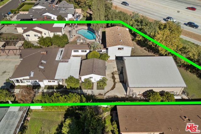Don't miss this once in a generation opportunity to own an historic Hollywood creative campus on nearly 3/4 of an acre in prime Valley Village. For over 40 years the property has served as the location of J&M Costumers, a custom costume house serving the film, television, and music industries worldwide. The company has worked with a wide variety of productions and artists including Natalie Cole, Michael Jackson, Tom Cruise, Ariana Grande, Lady Gaga and Bad Bunny, making the site a longstanding creative hub in the entertainment industry. Spanning 2 legal parcels totaling more than 30,000 square feet, the property offers an incredibly rare combination of residential, creative, storage, and parking uses. The campus includes 2 single-family homes, a casita, a two-story shop, a large outbuilding, multiple storage areas, a swimming pool, and parking for 10+ vehicles, including space for recreational vehicles. Tucked behind fencing and gates on a quiet Valley Village street, the property delivers privacy, flexibility, and scale that are difficult to replicate. 5708 Gentry Ave features a 3-bedroom, 2-bath residence of approximately 1,819 square feet on a 24,186 square foot lot. Additional improvements include an approximately 1,350 square foot sewing shop, an approximately 1,760 square foot two-story craft shop, and an approximately 420 square foot casita. 5716 Gentry Ave features a 3-bedroom, 2-bath residence of approximately 1,602 square feet on a 7,502 square foot lot. An additional structure at the front of the property has been taken down to the studs and may offer an opportunity for future improvement or reconfiguration, subject to buyer investigation and verification with the appropriate authorities. The rear of the property borders CalTrans land near the Burbank exit of the 170 Freeway. Buyers should independently investigate any potential access, use, or development possibilities. A truly unique offering for owner-users, creatives, investors, or developers seeking a legacy property with exceptional versatility and history.